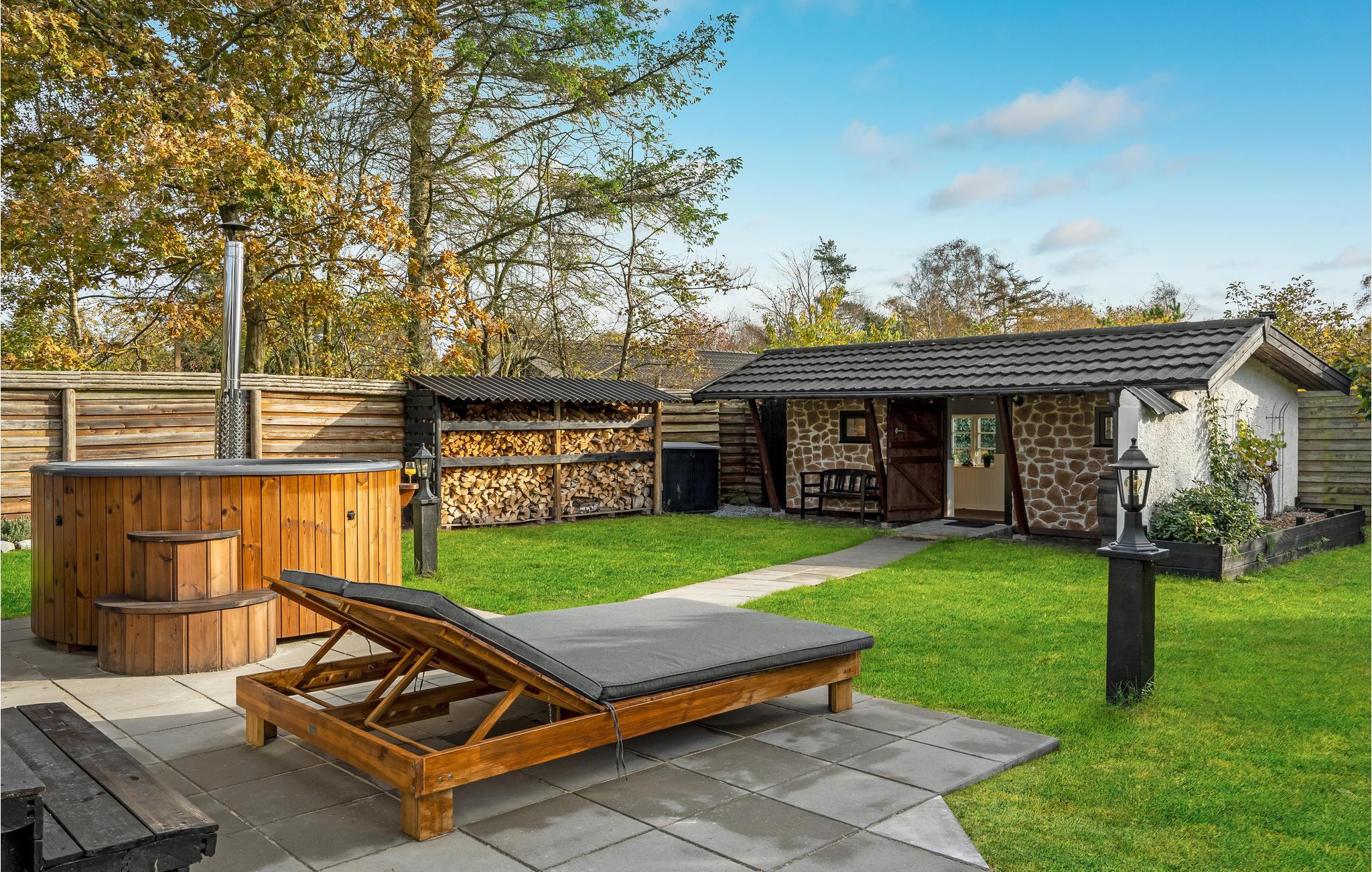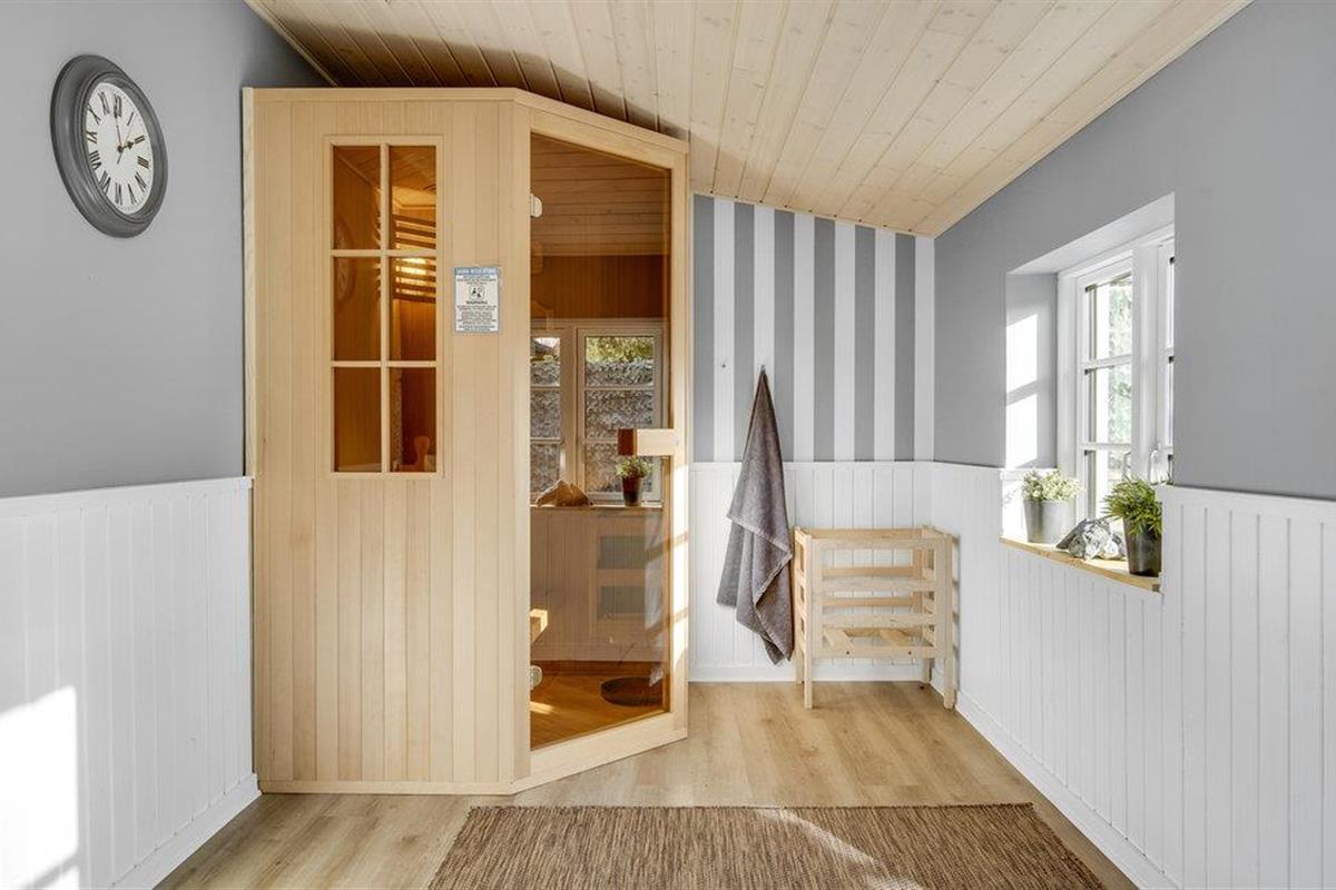 Ontspan in een luxe vakantiehuis met sauna, Finse houten bad en vlakbij Smidstrup Strand in Denemarken.