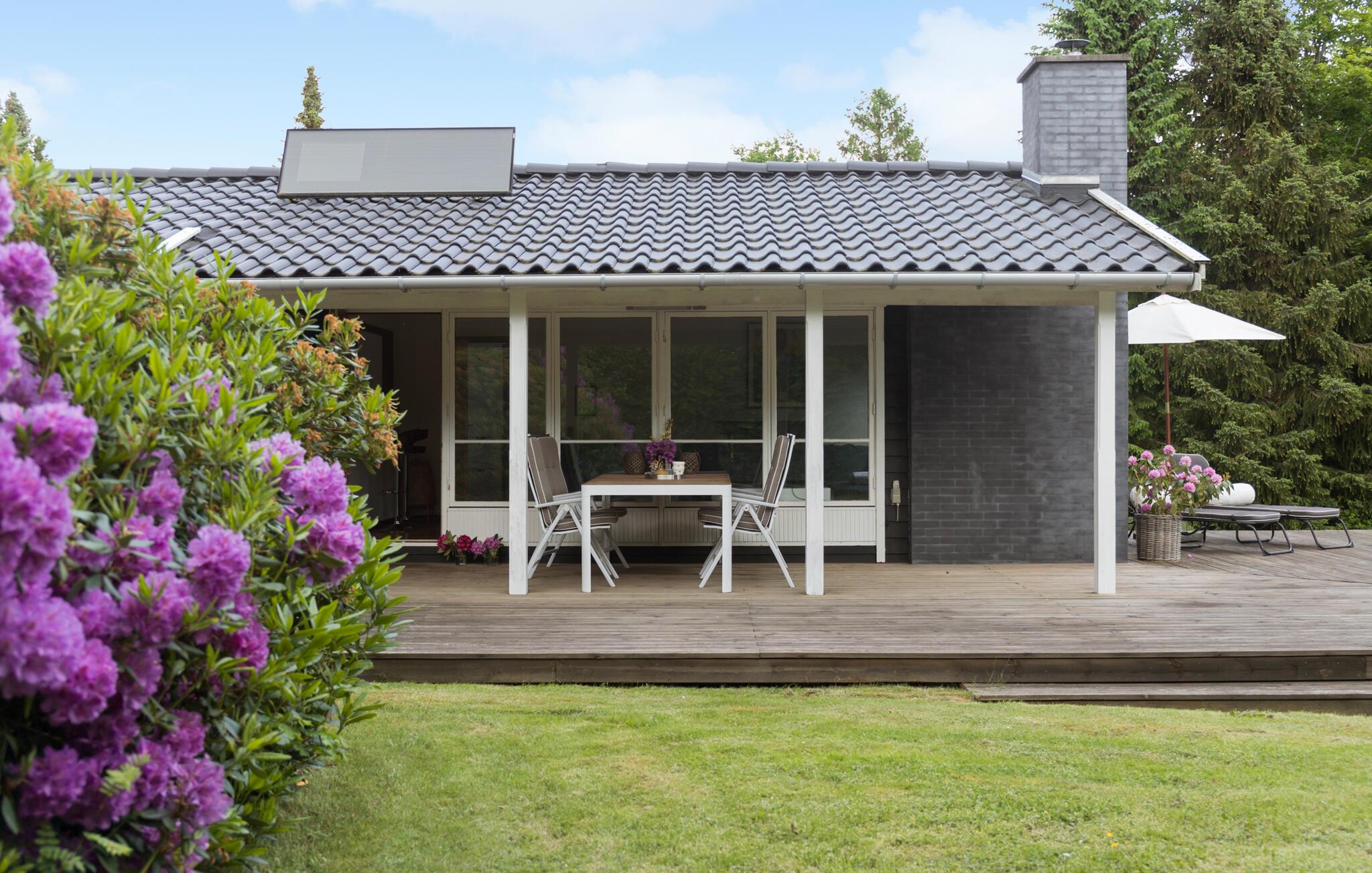 Gezellig vakantiehuis met houtkachel en groot terras vlakbij het zandstrand van Smidstrup, ideaal voor rust en ontspanning.