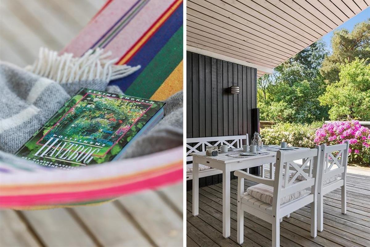 Das Ferienhaus ist von einem großen, eingezäunten Garten umgeben, der ideal für Ballspiele und zum Spielen ist. Die erhöhte Terrasse, die sowohl offen als auch überdacht ist, bietet reichlich Gelegenheit, das Leben im Freien bei jedem Wetter zu genießen. Genießen Sie ein leckeres Abendessen im Freien auf der Terrasse oder entspannen Sie sich in der Hängematte mit einem guten Buch.