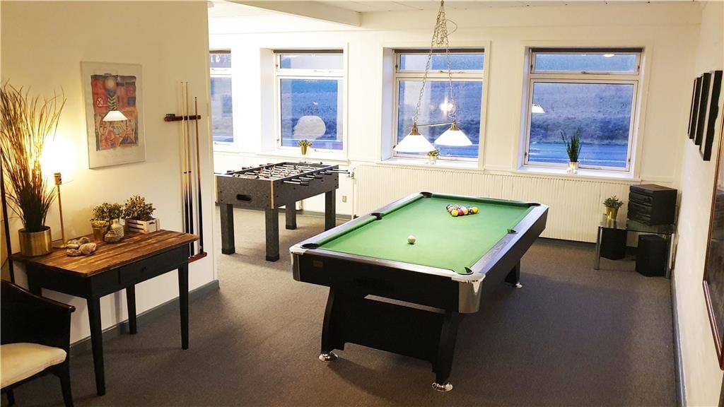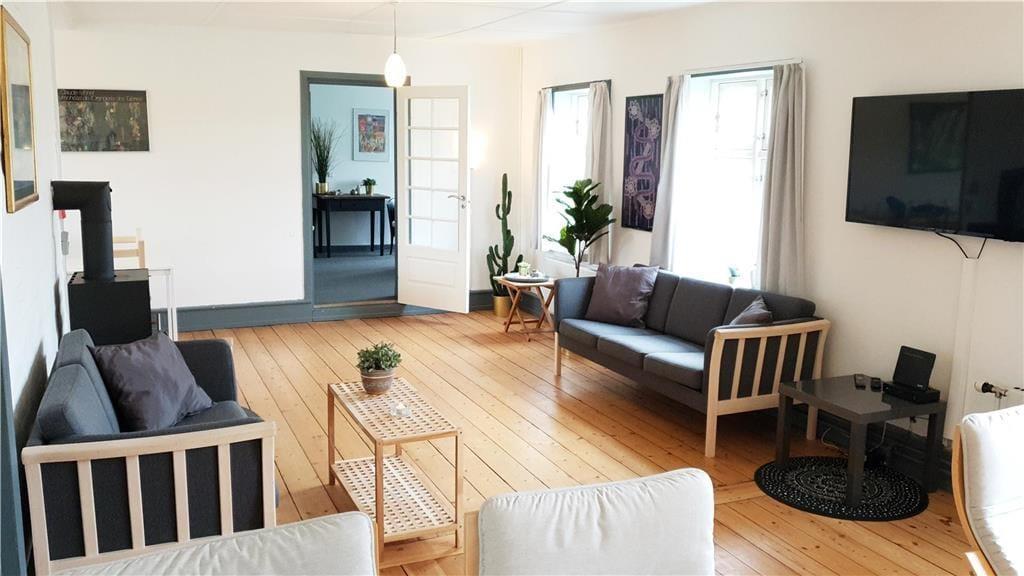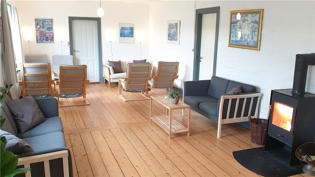 Gezellig vakantiehuis voor 20 personen met binnen zwembad en sauna in het bijbehorende gebouw. Het huis heeft op de begane grond een ruime woonkamer met eetkamer en houtkachel en een grote goed ingerichte keuken. Verder heb je nog een woonkamer met houtkachel, biljarttafel en voetbaltafel, 3 slaapkamers en 1 badkamer. Op de 1e verdieping vind je 7 slaapkamers en 4 badkamers. Het bijbehorende gebouw heeft een zwembad met whirlpool gedeelte. Tot het huis behoort ook de grote tuin met kampvuurplaats en veel ruimte om te spelen. Een echt fijn huis om samen te zijn met familie of vrienden. Het huis is een ideale uitvalsbasis voor leuke uitstapjes in de omgeving zoals bijv. het kleine en gezellige haven stadje Lohals ligt op ca. 6 km van het vakantiehuis. Goed om te weten dat het verbruik kan oplopen tot ca. € 140,00 per dag.