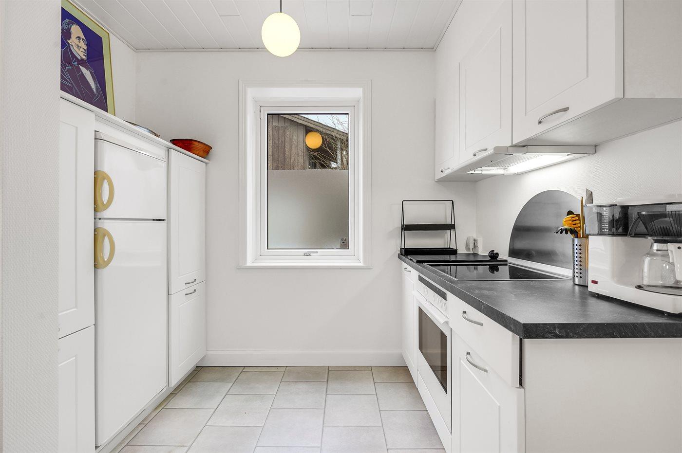 De keuken is uitgerust met koelkast Er zijn 4 keramische kookplaten, heteluchtoven en vaatwasser.