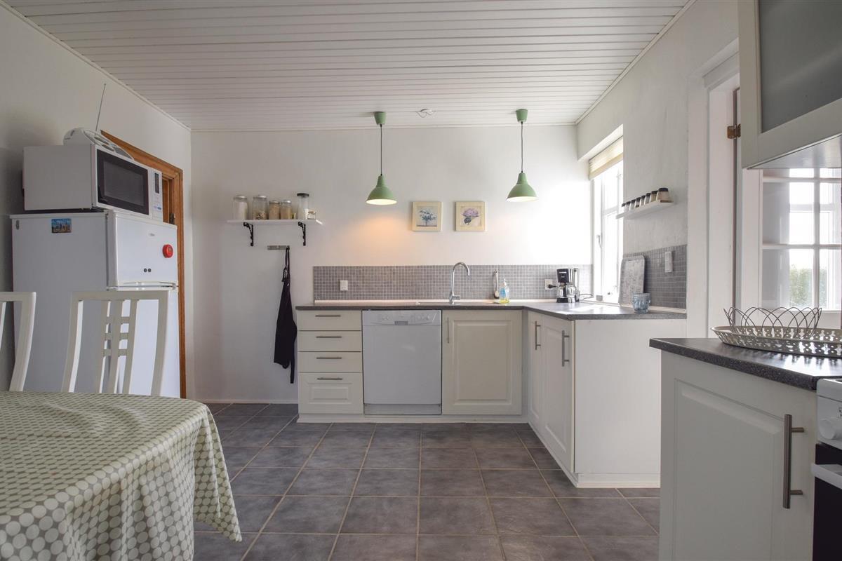 Het interieur van het huis is licht en vriendelijk. Er liggen geen tapijten, er zijn houten vloeren in de woonkamer en slaapkamers en tegels in de badkamer en keuken. Vanaf de eerste verdieping kijkt u uit over de velden, en op heldere dagen kunt u in de verte het water zien. U bevindt zich niet ver van de stranden bij Snøde, Stoense Udflytter en Lohals, evenals de haven en de bossen bij Lohals.
