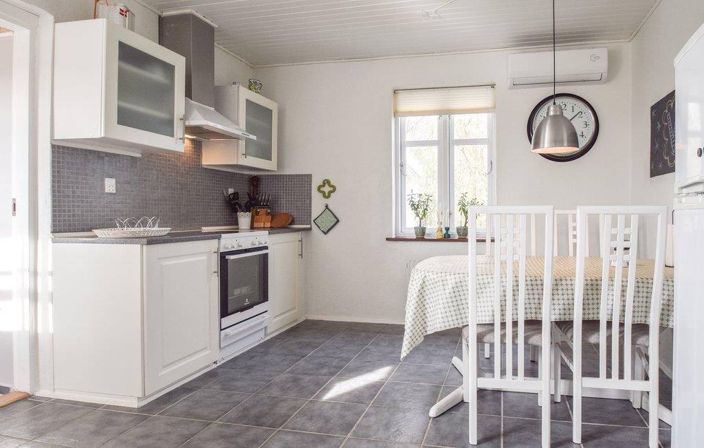 Gezellig en goed onderhouden vakantiehuis aan een landweg in Nordlangeland, iets meer dan een kilometer van de stad Snøde. De grote tuin biedt diverse speelmogelijkheden voor kinderen en is omheind met een haag aan de ene kant en bomen aan de andere kant.