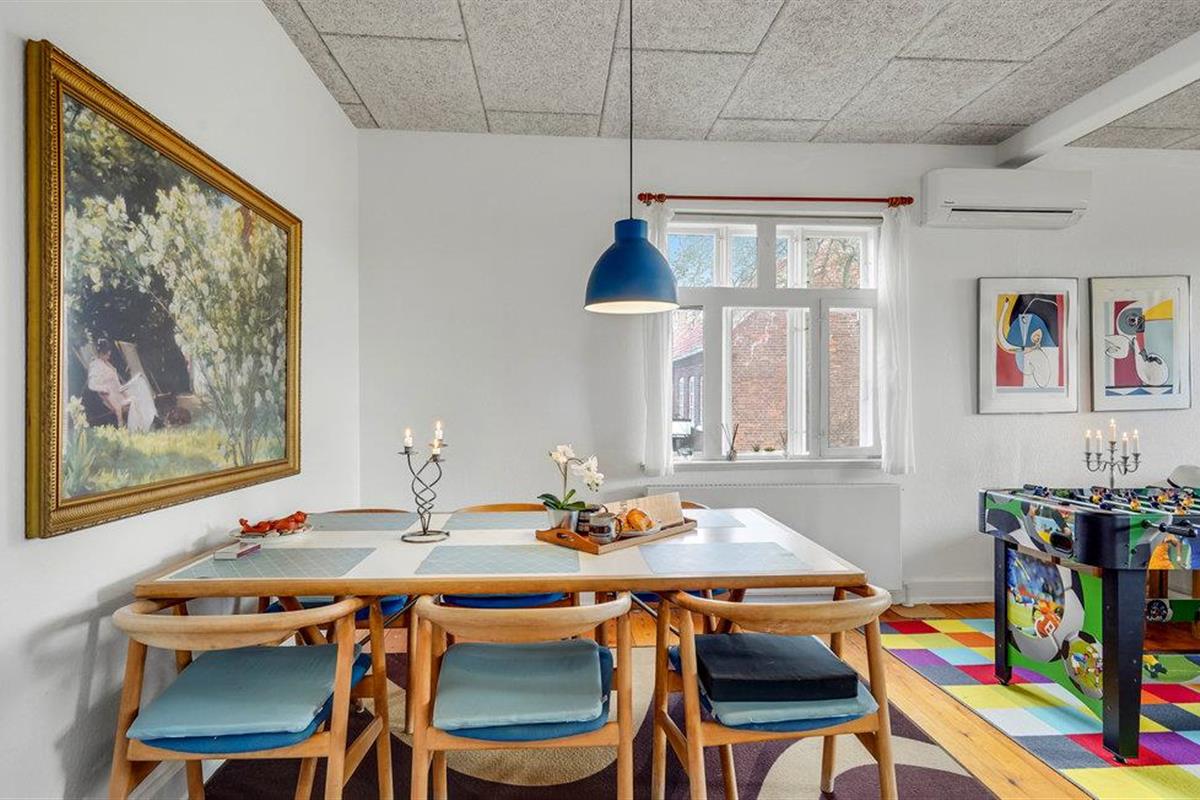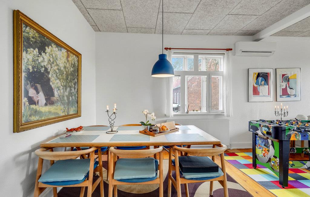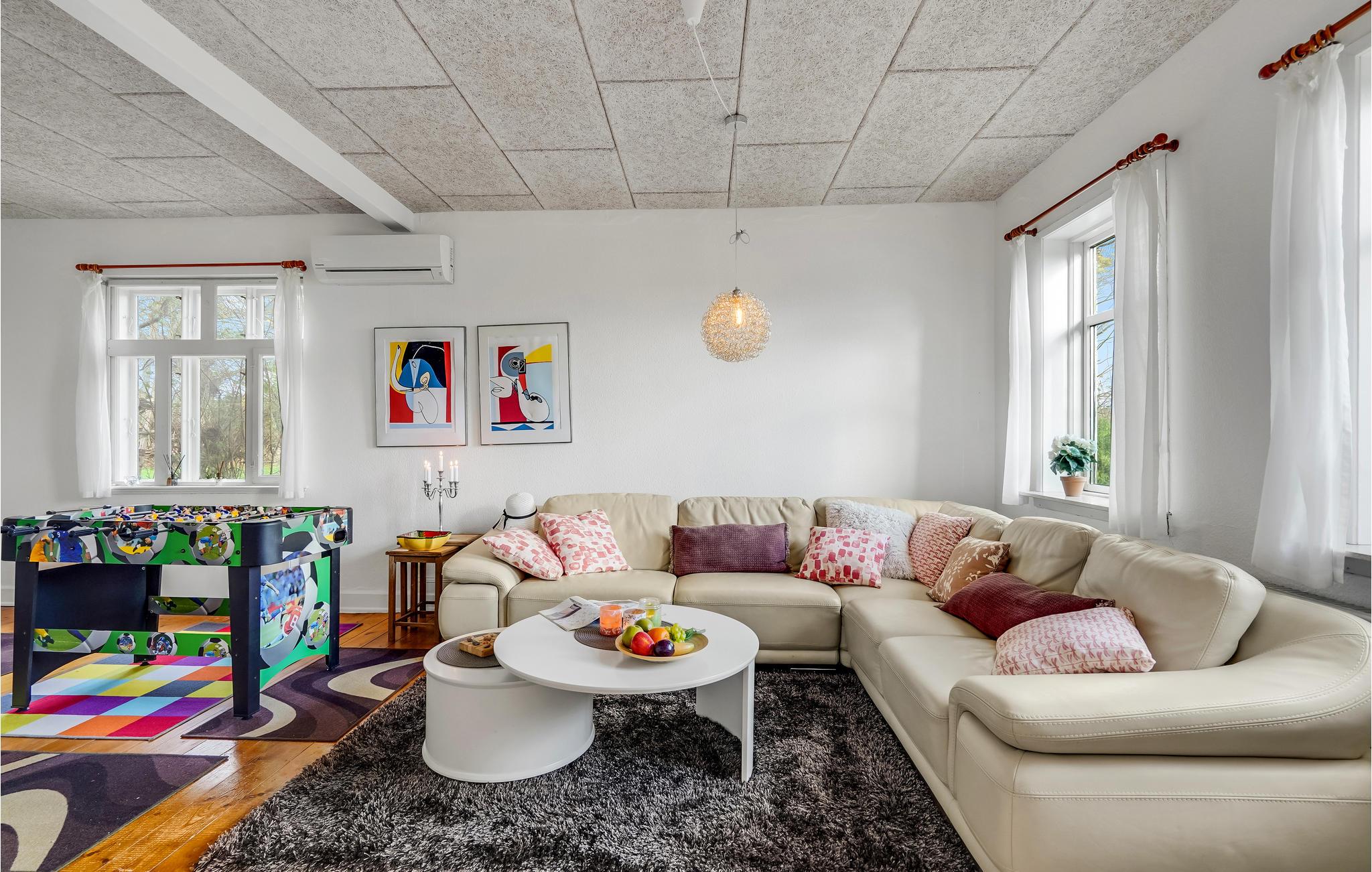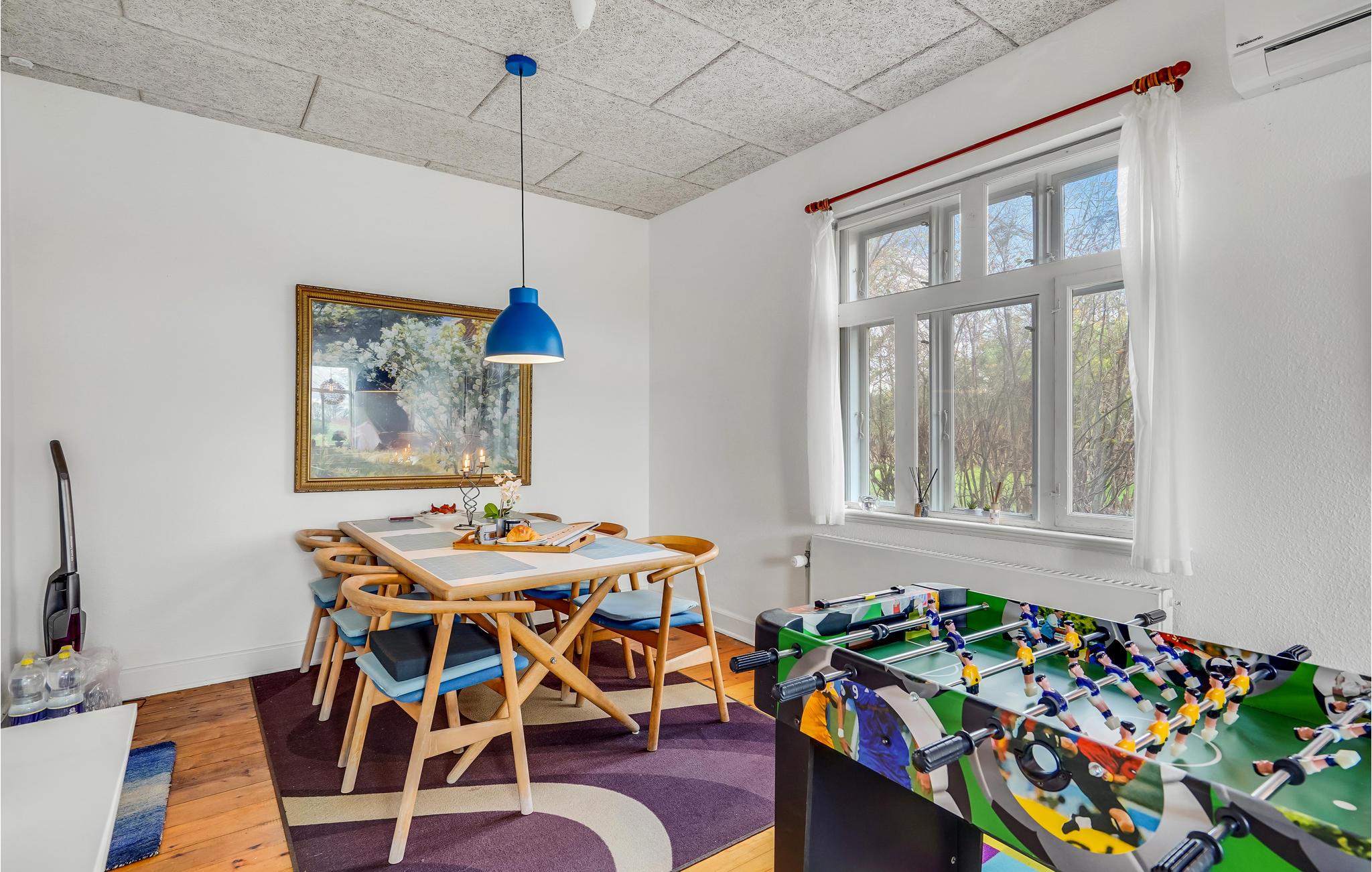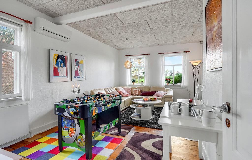 Op het noordelijke deel van het eiland Langeland heet dit grote, charmante vakantiehuis u welkom. Het lichte interieur strekt zich uit over twee verdiepingen en maakt een huiselijke en authentieke indruk. Breng gezellige uren door met uw geliefden in de woonkamer en geniet af en toe van een spelletje tafelvoetbal. Kijk 's avonds naar een goede film of organiseer een bordspelavond voor het hele gezin.