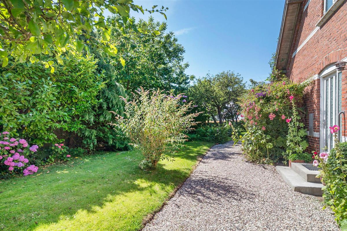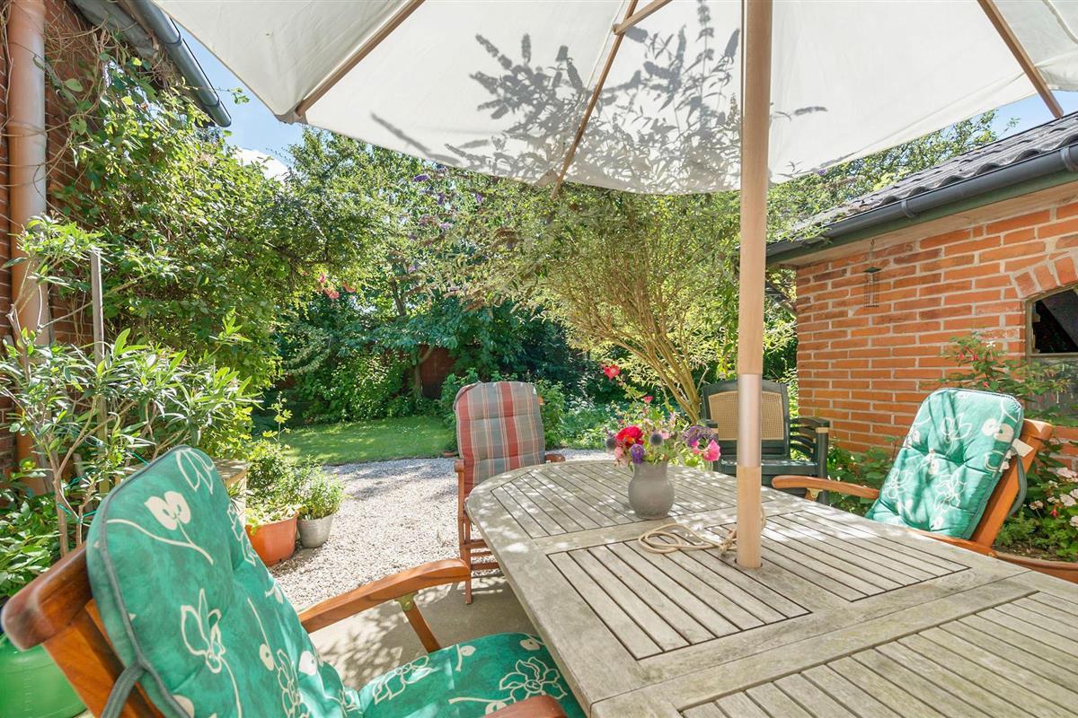 Het huis heeft een idyllische, goed onderhouden tuin met bloembedden, oude fruitbomen en rustige hoekjes. Breng in de zomer ontspannende uren door in het tuinmeubilair onder de parasol terwijl de kinderen zich uitleven in de groene ruimte - dit is de plek om van het leven te genieten. Mocht het nodig zijn met de kinderen, bijvoorbeeld, dan kan het terras worden omheind.