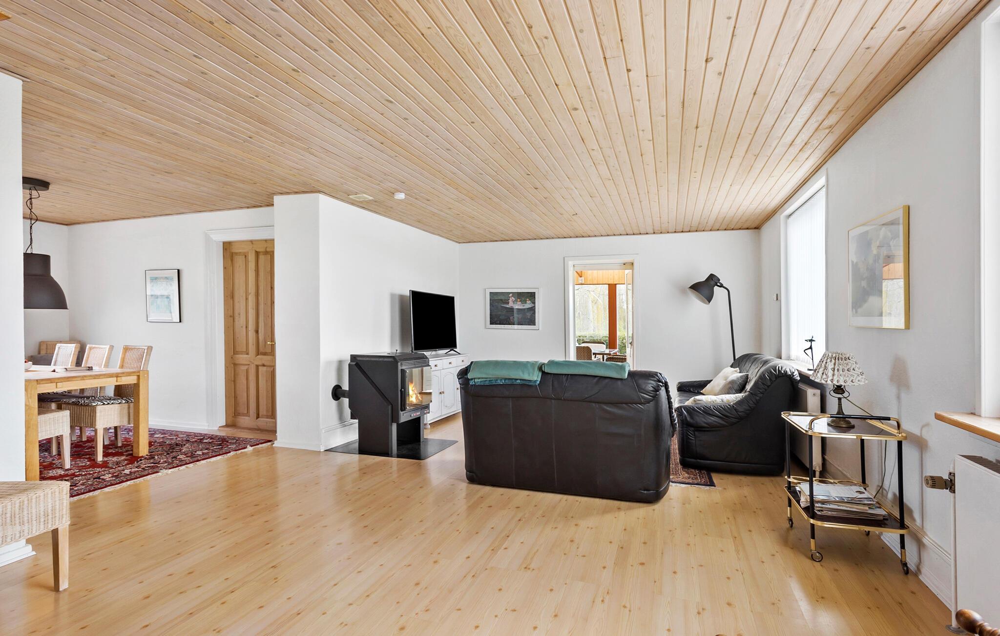 Landelijke idylle en een rustig vakantieverblijf wachten op je in je vakantiehuis, dat zowel binnen als buiten veel ruimte voor ontwikkeling biedt. Begin je dag met het bereiden van een uitgebreid ontbijt in de ruime keuken. De idyllische algemene sfeer van je vakantiehuis wordt ook weerspiegeld in de keuken en het eetgedeelte van je vakantiehuis. Ontspan bij de houtkachel in de woonkamer of breng de familie samen in de serre. Hier is ruimte om te kaarten, te schilderen of uitgebreid te praten over je verwachtingen voor de komende vakantiedagen. Buiten biedt het grote perceel volop mogelijkheden voor verschillende spelletjes met het hele gezin. Aan het einde van het perceel is het slechts een steenworp afstand naar het zandstrand, waar je kunt genieten van een duik in de zee.