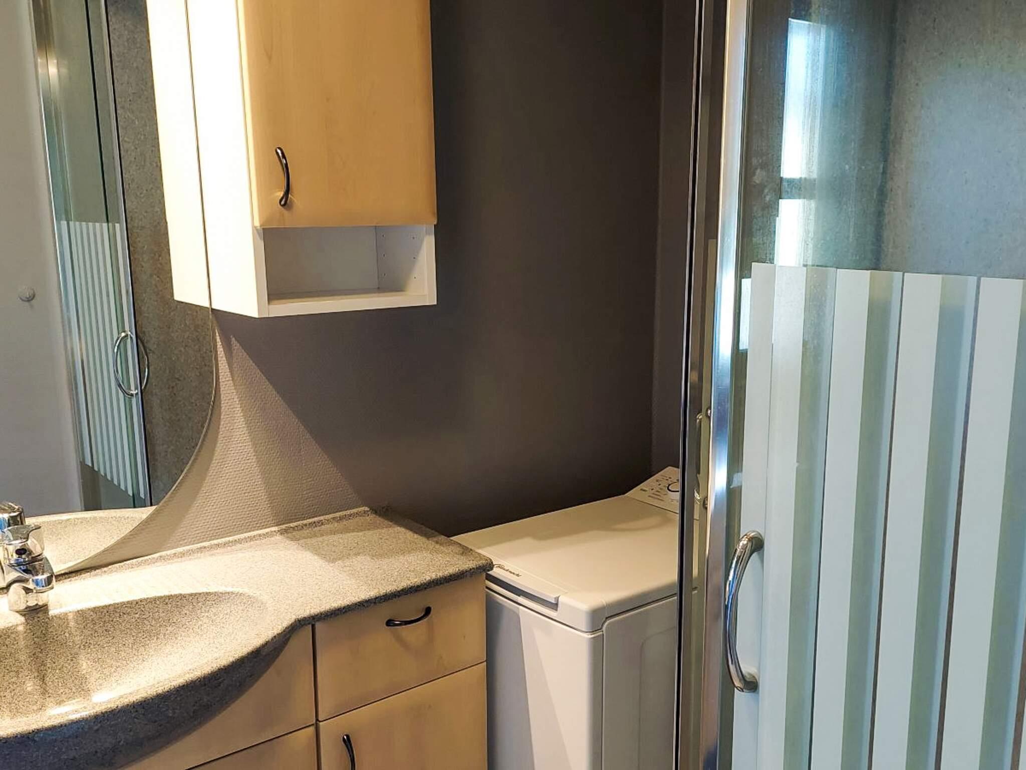 Wohnzimmer und Bad sowie eine überdachte Terrasse. Für den Grill ist kein Gas bzw. keine Grillkohle vorhanden.