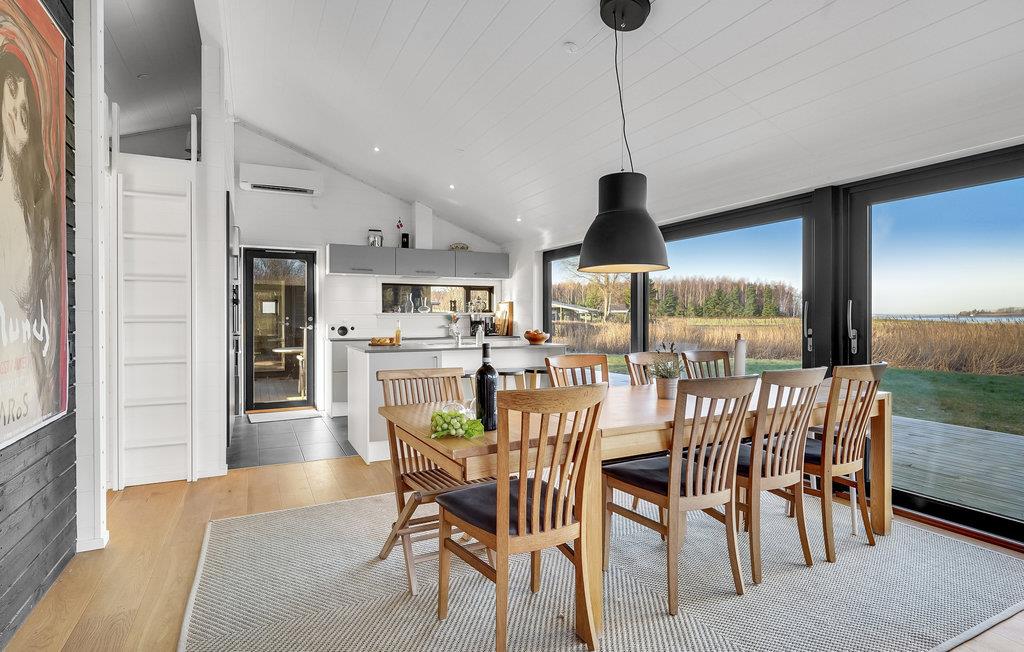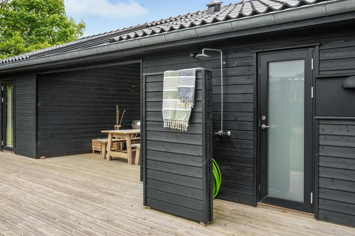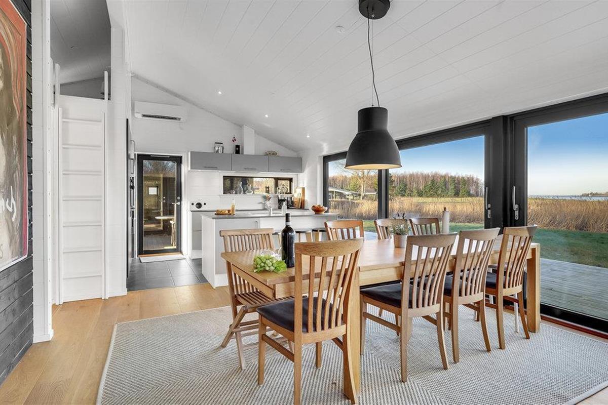 De glazen puien overspoelen de ruimte met licht, wat de natuurlijke sfeer van het hele huis versterkt. Verder nodigt dit moderne interieur u uit om u helemaal thuis te voelen in dit vakantiehuis op Hals Strand. De hele leefruimte is met elkaar verbonden, waardoor u zich heel gemakkelijk vrij en vloeiend kunt bewegen. Stelt u zich voor dat u een lekker ontbijt met vers gezette koffie bereidt in deze ideaal uitgeruste keuken en vervolgens buiten of binnen aan tafel gaat om samen de dag aan te pakken.