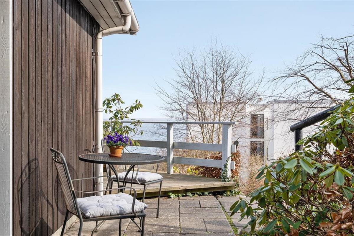 Geniet van een licht vakantiehuis met zeezicht en terras nabij het strand in Snekkersten, Denemarken.
