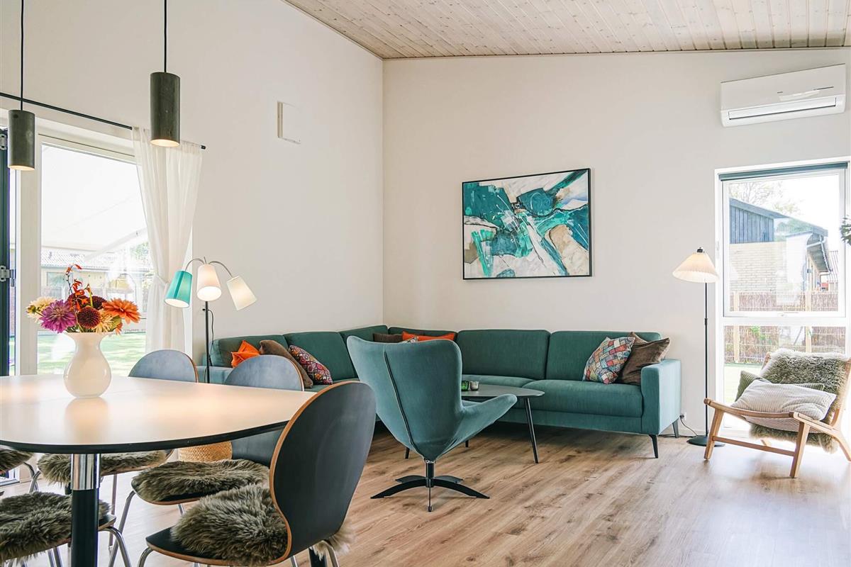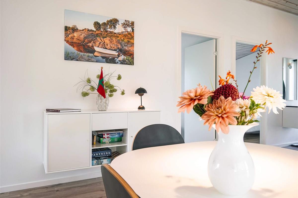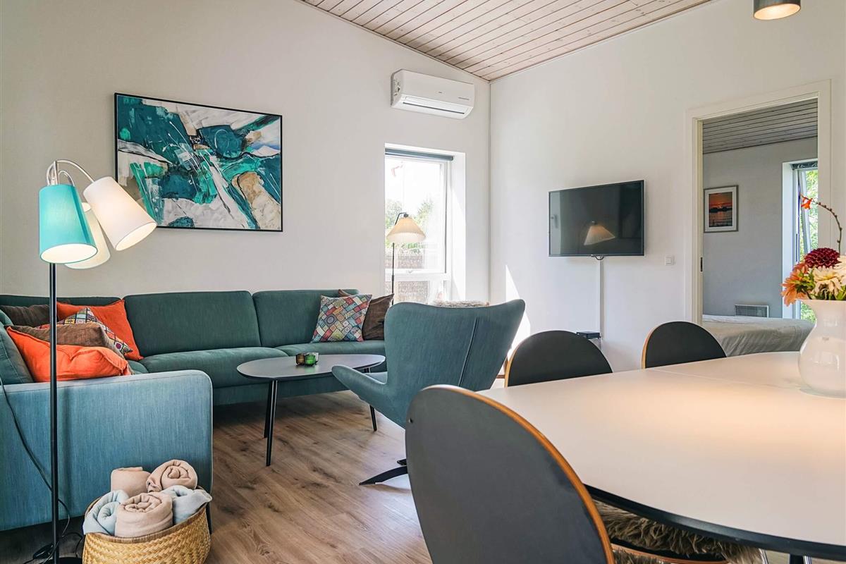 Das Ferienhaus ist innen optimal, mit modernem Interieur im typisch nordischen Stil eingerichtet und verfügt über klimafreundliche Heizquellen, die für ein richtig gutes Raumklima sorgen. Gut ausgestattetes und gemütliches Wohn- und Esszimmer mit TV und direktem Zugang zur 32 m2 großen, sonnigen Terrasse mit Gartenmöbeln und Grill.