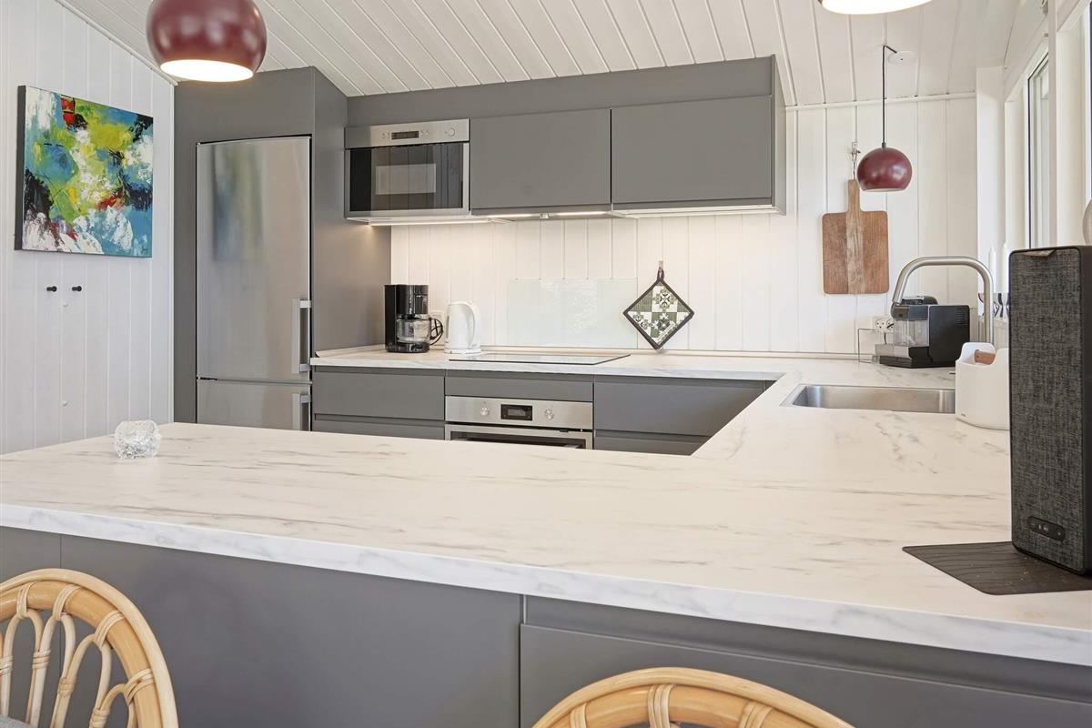 Das gut ausgestattete Ferienhaus bietet eine renovierte Küche mit allen modernen Annehmlichkeiten, einschließlich Fußbodenheizung und Meerblick. Die Zubereitung der Feiertagsmahlzeiten wird zum Kinderspiel, und Sie haben viel Platz, um das Kochen zu genießen.