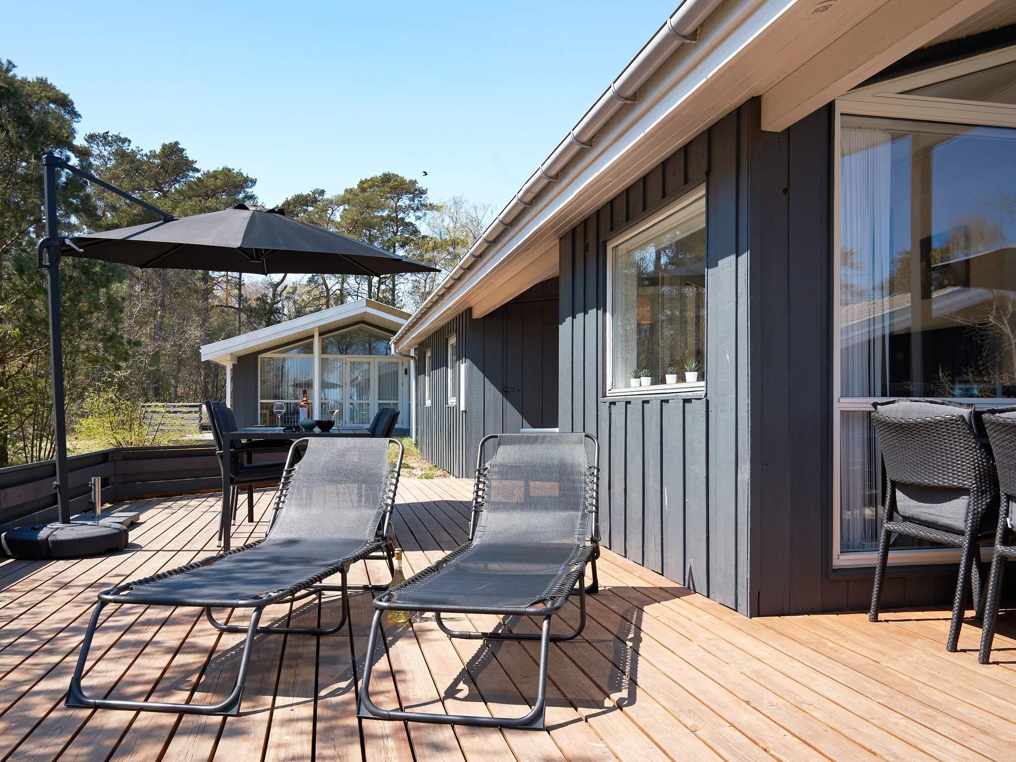 Vom Wohnzimmer aus haben Sie direkten Zugang zu einer schönen großen Holzterrasse, auf der Sie Ihre Urlaubstage von morgens bis abends genießen können. Die Nähe zum Meer und die Möglichkeit für ein schnelles Bad oder einen schönen, langen Tag am Strand machen das Haus besonders attraktiv.