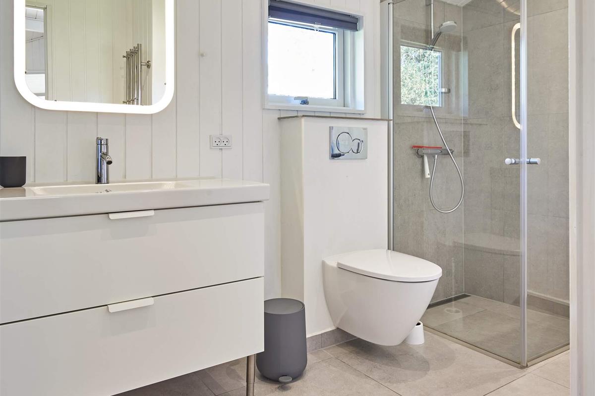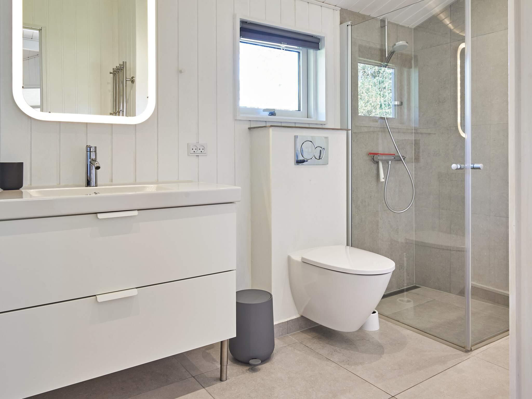 Modernes Badezimmer von 2020 mit angenehmer Fußbodenheizung. Wenn Sie sich nach dem Bad im Meer oder dem Spaziergang am Strand aufwärmen möchten, steht dafür eine Sauna zur Verfügung. Außerdem vier gute Schlafzimmer und eine Gästetoilette im Haus.