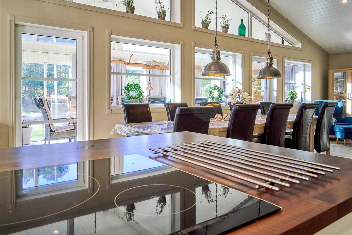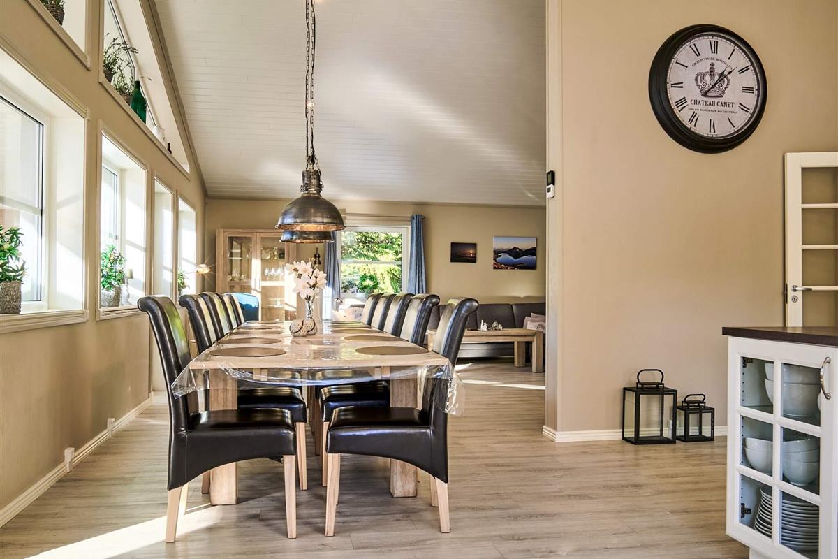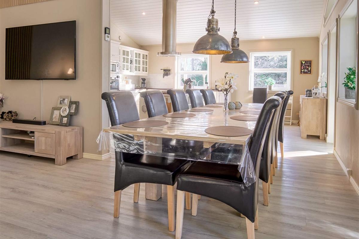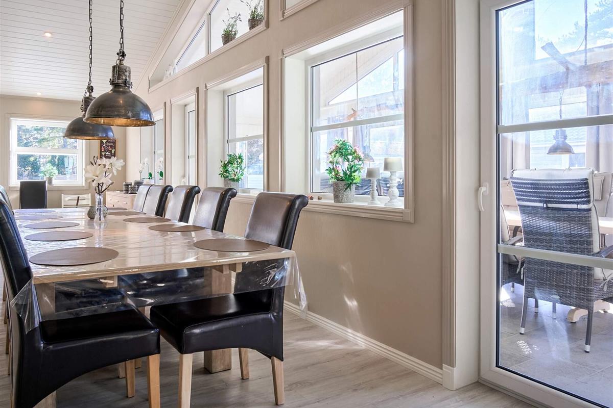 Im Inneren des Ferienhauses erwartet Sie überwältigendes Licht und moderne Einrichtung sowie vier gut ausgestattete Schlafzimmer mit bequemen Doppelbetten (insgesamt finden acht Personen Platz), eine große, gut ausgestattete Küche mit beeindruckender Kücheninsel sowie ein prächtiger Esstisch für zwölf Personen schaffen den perfekten Rahmen für unvergessliche Momente Mahlzeiten. Das großzügige Wohnzimmer mit großzügigem Ecksofa, einladendem Sessel und Entertainment in Form eines Fernsehers lädt zum Entspannen pur ein. Für zusätzliche Gemütlichkeit sorgt der charmante Wintergarten, der ebenso viel Essbereich und ein Sofa bietet. Dieses Ferienhaus ist nichts weniger als ein wahr gewordener Traum, in dem alle Wünsche für ein wunderschönes Urlaubserlebnis erfüllt werden! Der großzügige Innenraum und die hohen Decken bieten der ganzen Familie viel Platz zum Entspannen.