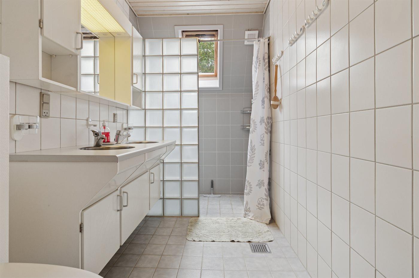 Er is 1 badkamer met douchehok en 2 toiletten, waarvan 1 gastentoilet. Er is vloerverwarming in 1 badkamer.