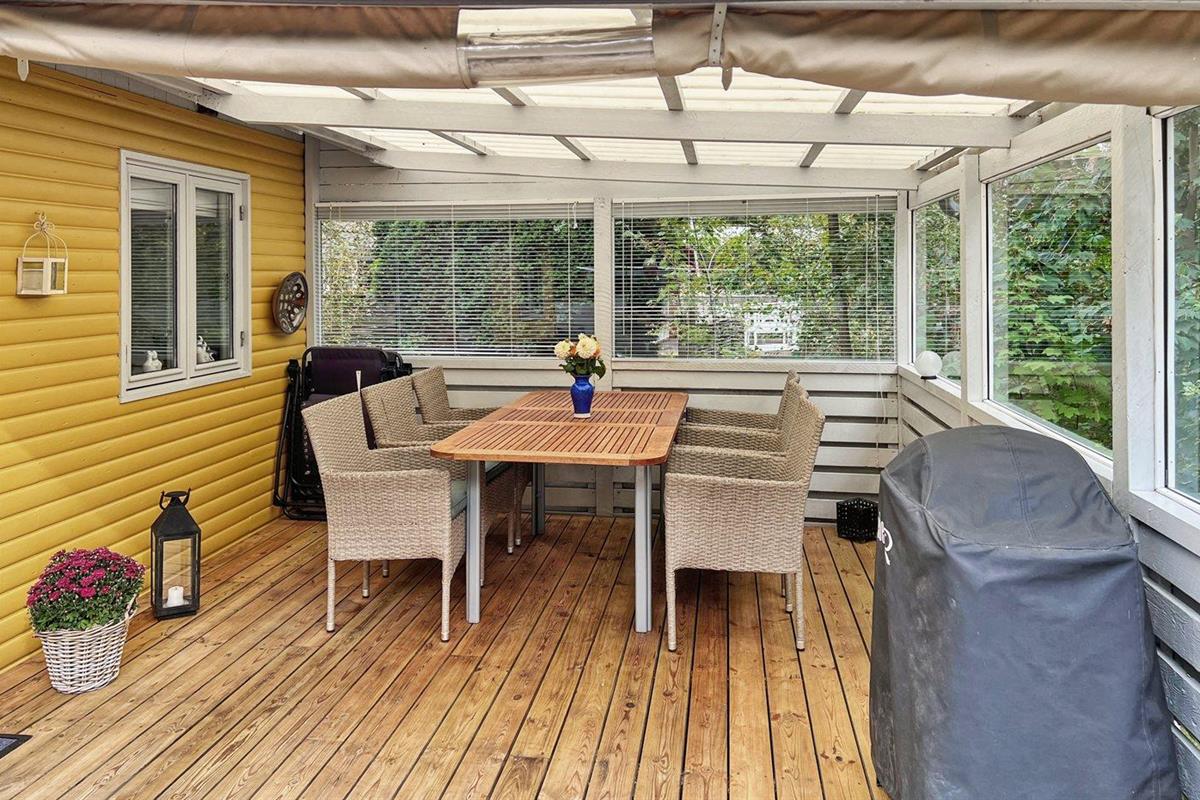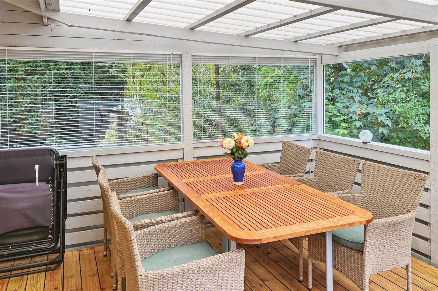 Charmant vakantiehuis dichtbij zee met houten haard, overdekt terras en gratis wifi in Nexø, Denemarken.