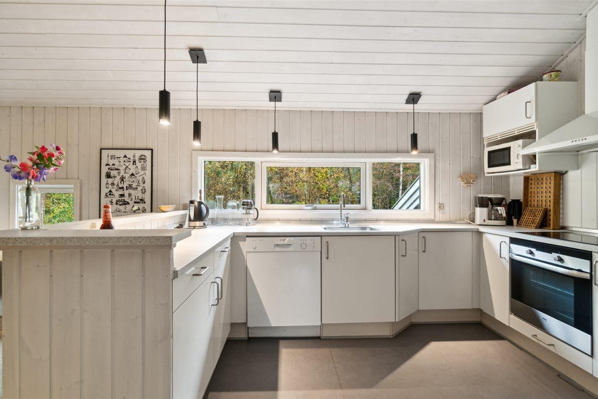 De keuken is uitgerust met koelkast Er zijn 4 keramische kookplaten, heteluchtoven, magnetron en vaatwasser.