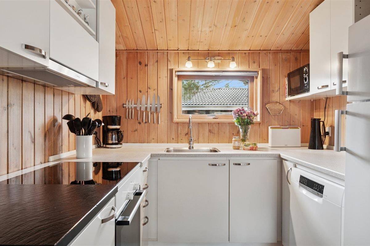 De keuken is uitgerust met koelkast Er is 4 inductiekookplaten, heteluchtoven, magnetron en vaatwasser.