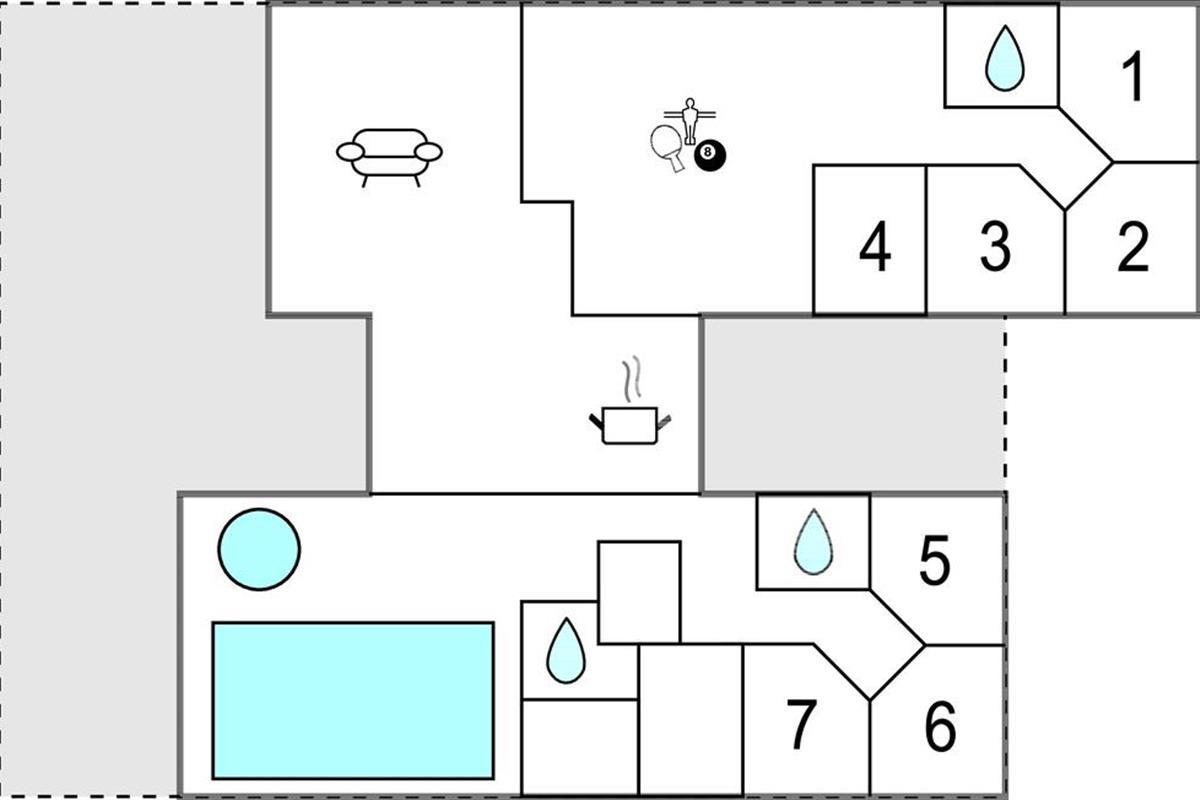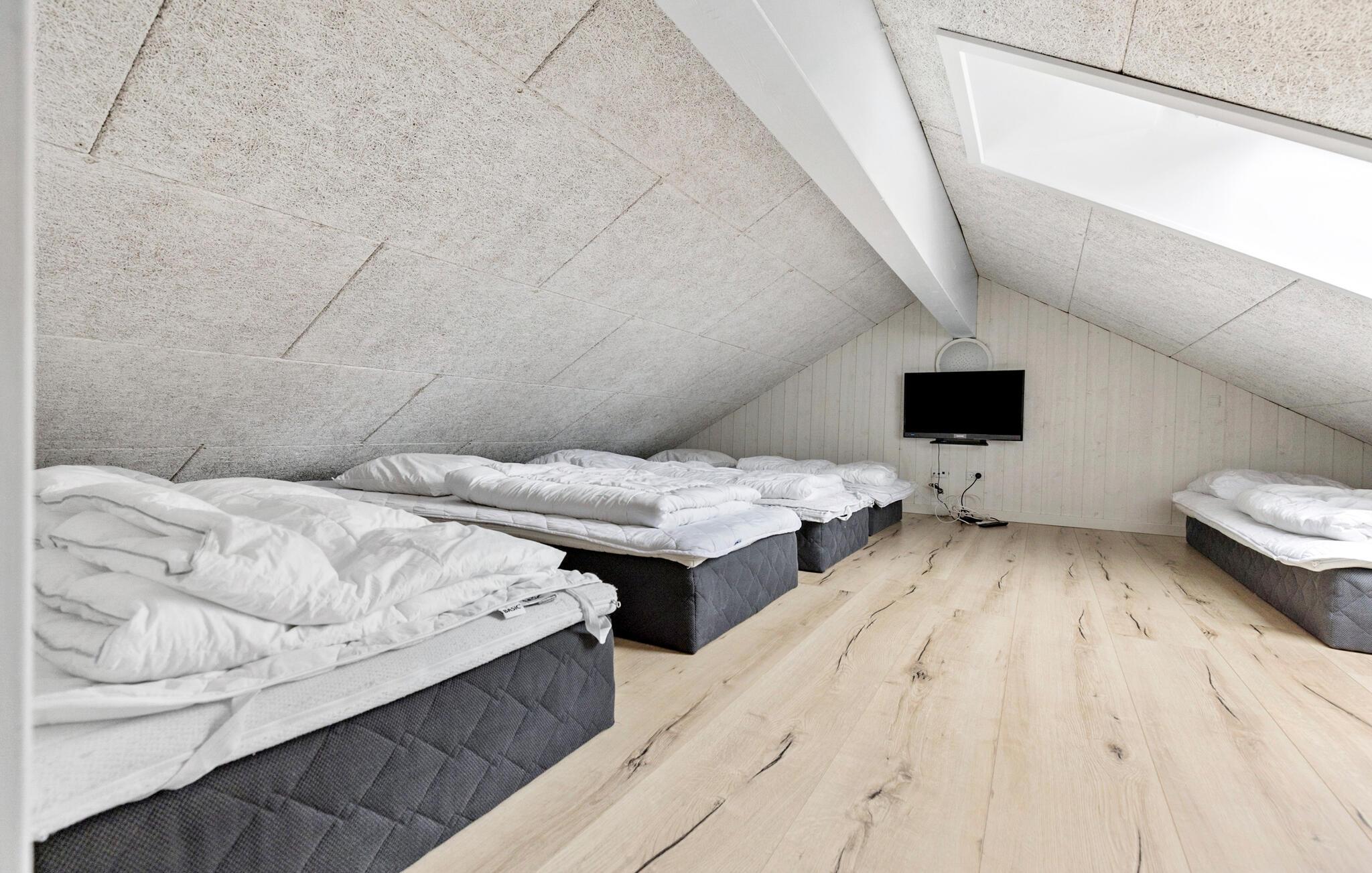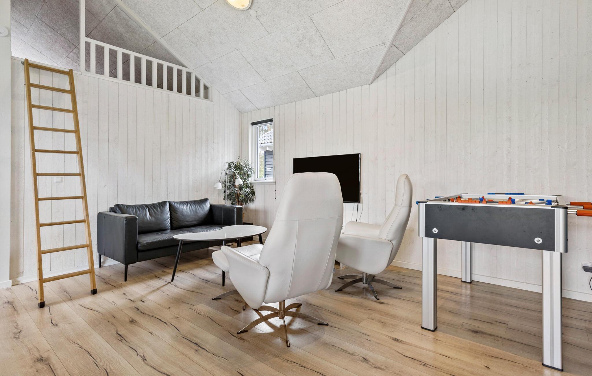 Reis naar Snogebäk met je uitgebreide familie of vrienden en stellen en geniet van de voorzieningen, want aan iedereen is gedacht. Verblijf in het voor gehandicapten toegankelijke huis met hellingbaan en zorgbed, maar geniet ook van de voordelen van de vele woonkamers en slaapkamers, evenals de zolder, die als slaapzaal voor je kinderen kan dienen. Geniet van het overdekte zwembad met glijbaan en jets en van de whirlpool of sauna, waar je kunt ontspannen terwijl de kinderen zich vermaken in het zwembad. Je kunt ook 's avonds ontspannen in de sauna of in de bar in de activiteitenruimte. Organiseer tafelvoetbal- of biljarttoernooien of kom samen in de bar, die een eigen koelkast heeft.