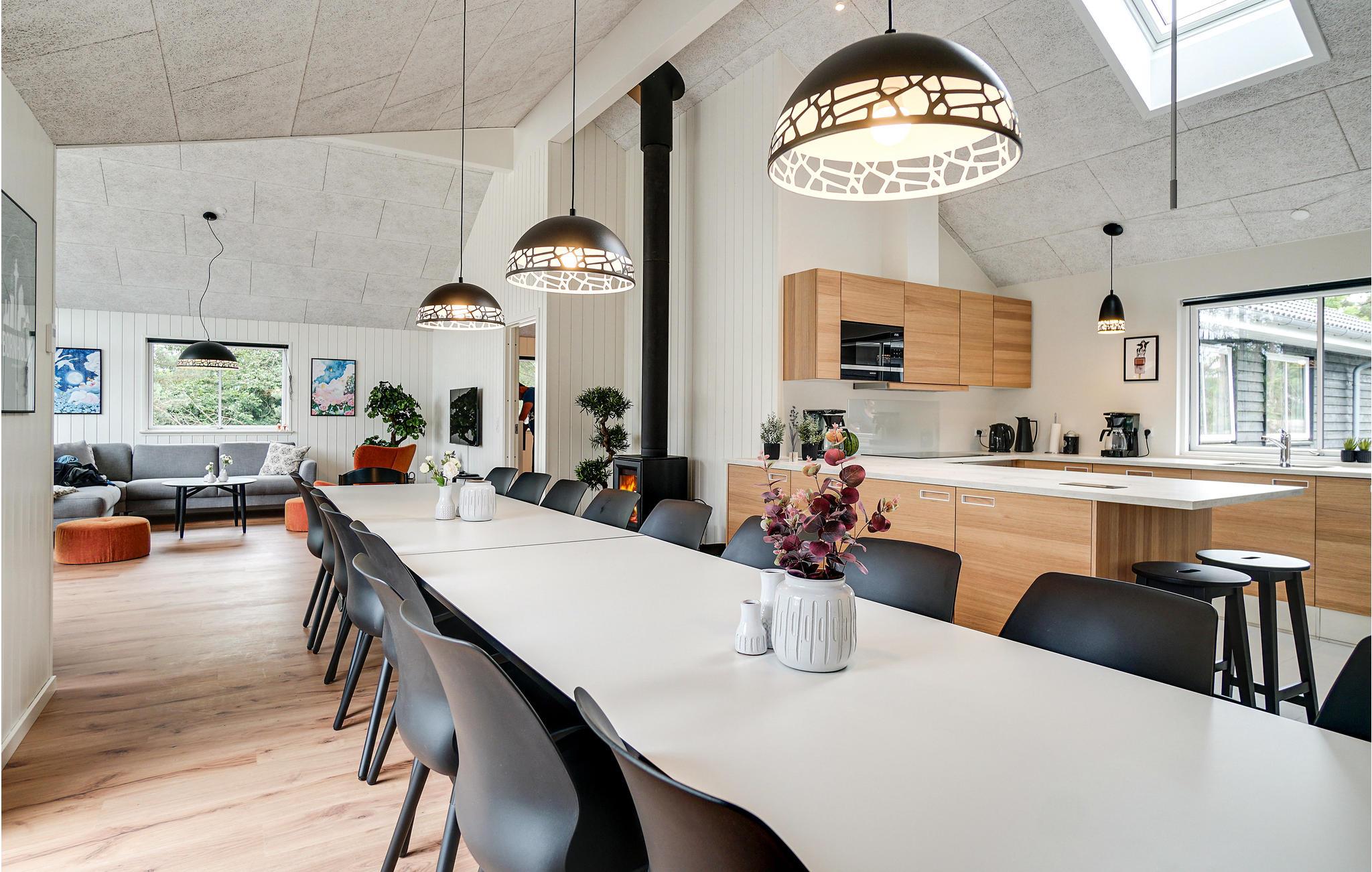 Dit prachtige vakantiehuis met in totaal 7 slaapkamers, een grote loft en 3 badkamers ligt op een groot natuurgrondstuk in het populaire Snogebæk. Een uitstekend zandstrand, leuke winkeltjes en restaurants zijn niet ver weg. Het hoge comfort van het huis en de vele moderne faciliteiten en activiteitenmogelijkheden maken het aantrekkelijk voor vakantieverblijven, teambuildingevenementen en familiefeesten het hele jaar door.