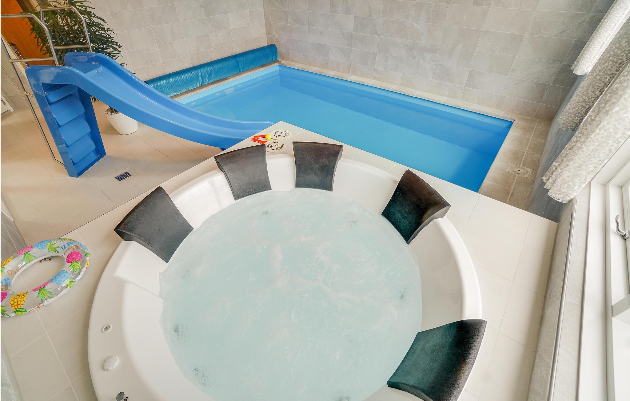 Dit prachtige en zeer goed uitgeruste vakantiehuis straalt vakantievreugde uit en biedt tal van activiteitenmogelijkheden op elk moment van het jaar. Het moderne huis ziet er overal gastvrij uit. Er is een prachtig binnenzwembad waar de kinderen en kinderlijke zielen urenlang in het water kunnen dartelen. Je kunt ook genieten van je wellnessvakantie in de grote whirlpool en opwarmen in de gezellige sauna. Er is hier echt veel ruimte met een grote eettafel en een prachtige open keuken die van alle gemakken is voorzien. Het huis biedt ook een grote activiteitenruimte waar je kunt tafeltennissen, biljarten of tafelvoetballen.