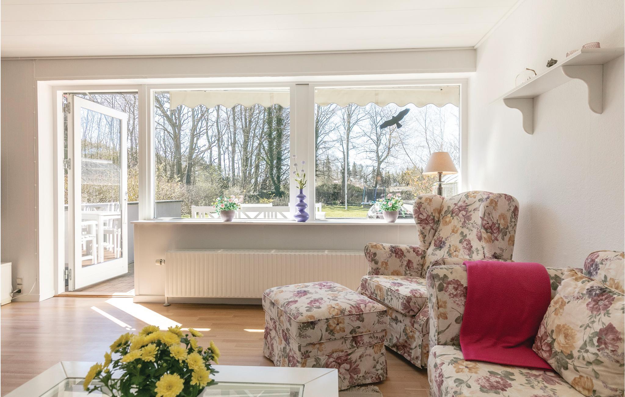 Gezellig vakantiehuis op een goede locatie, dicht bij het bruisende leven van het vissersdorp Snogebæk en toch rustig gelegen, met een heerlijk grote en kindvriendelijke tuin grenzend aan het bos van Snogebæk. Het huis is ruim en heeft een grote woonkamer met open haard en een breed raam aan de voorkant naar het terras en de grote tuin. Daarnaast vindt u een grote slaapkamer met een tweepersoonsbed (verstelbare lattenbodem) en bijbehorend babybedje, evenals een kleinere kamer met 2 eenpersoonsbedden. In dit mooie vakantiehuis is er ook een lichte badkamer met douche en vloerverwarming en een nieuwere, goed uitgeruste keuken met vaatwasser. Berging met wasmachine en grote vriezer. In de kindvriendelijke en omheinde tuin staat een kleine trampoline die u op eigen risico gebruikt, er is ook een grote zandbak en een ruim tuinhuis met verlichting met zonnepanelen. Op het gezellige terras zijn er verschillende sets tuinmeubelen met bijpassende zitkussens, een barbecue en een zonnescherm, alles om echt van uw vakantie te genieten. Dit vakantiehuis ligt dicht bij het strand van Snogebæk, het kindvriendelijke Balka-strand en niet ver van cafés, een ijssalon, de herberg Sørens Værtshus, winkels en restaurants, waaronder een gezellige rokerij.
