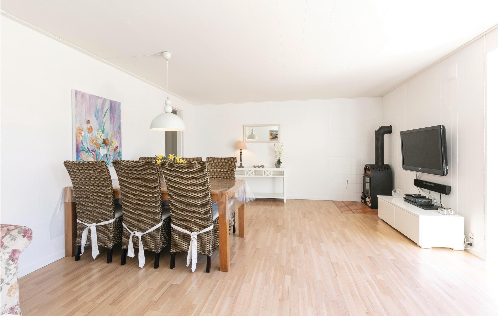Gezellig vakantiehuis nabij Snogebæk met grote tuin, open haard en kindvriendelijke voorzieningen voor een ontspannen verblijf.