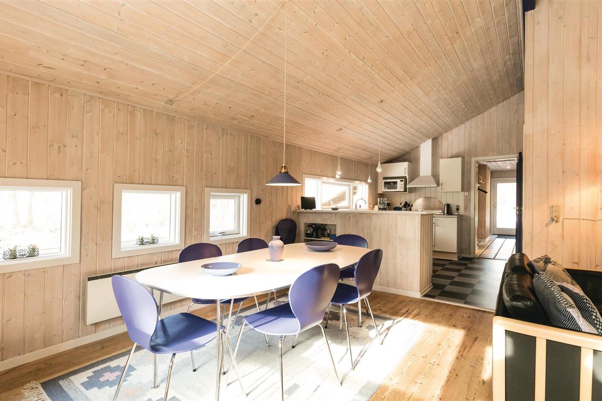 Je vakantiehuis in Snogebæk is licht en praktisch ingericht, met veel doordachte details, en is ideaal voor twee gezinnen. De open keuken leidt naar de gezellige, gecombineerde woon- en eetkamer met houtkachel en alkoof. Op het grote houten terras van het huis vind je een beschutte hoek die ideaal is om te ontspannen.