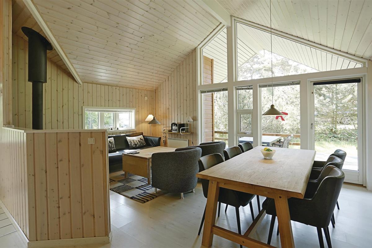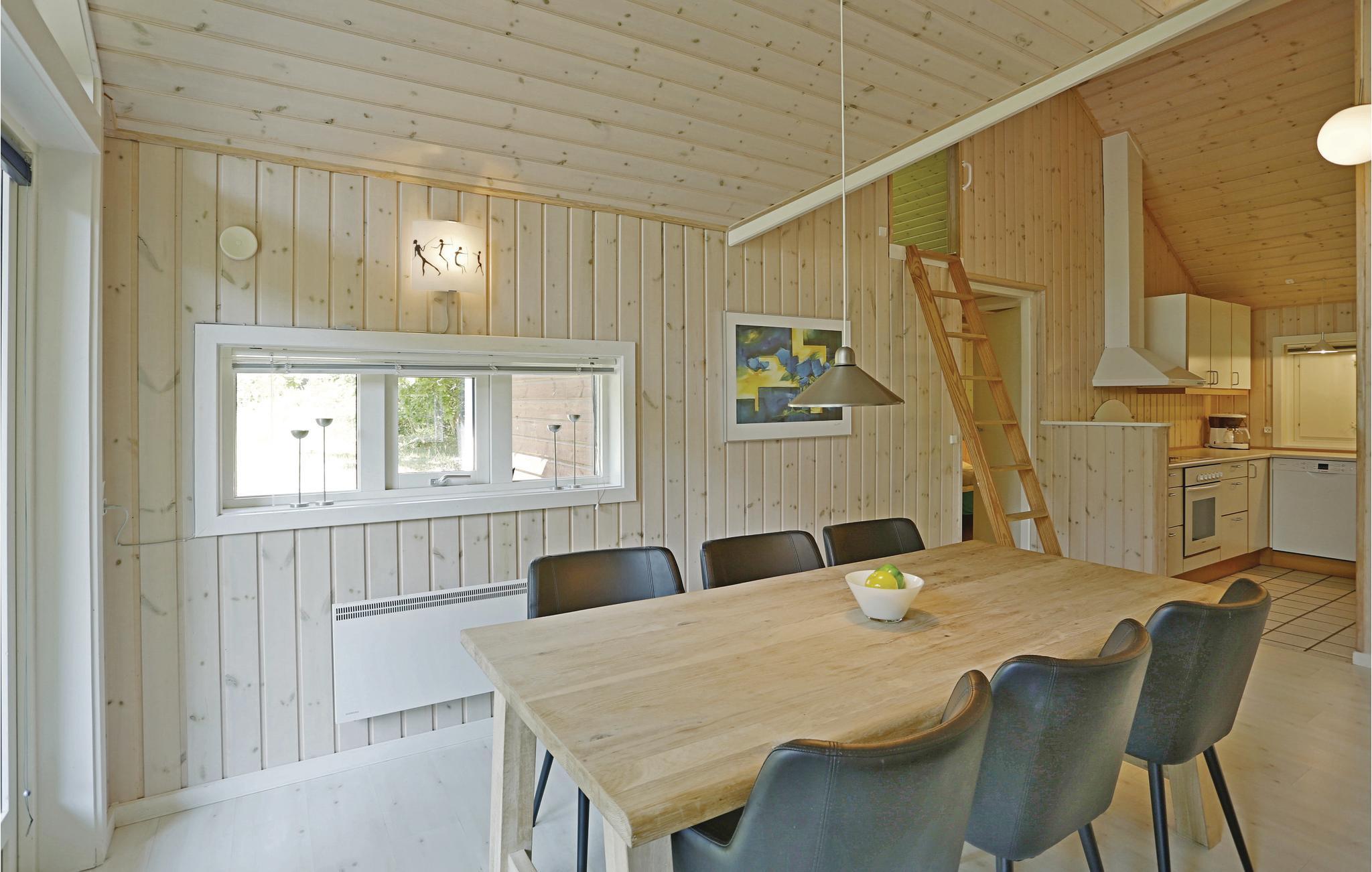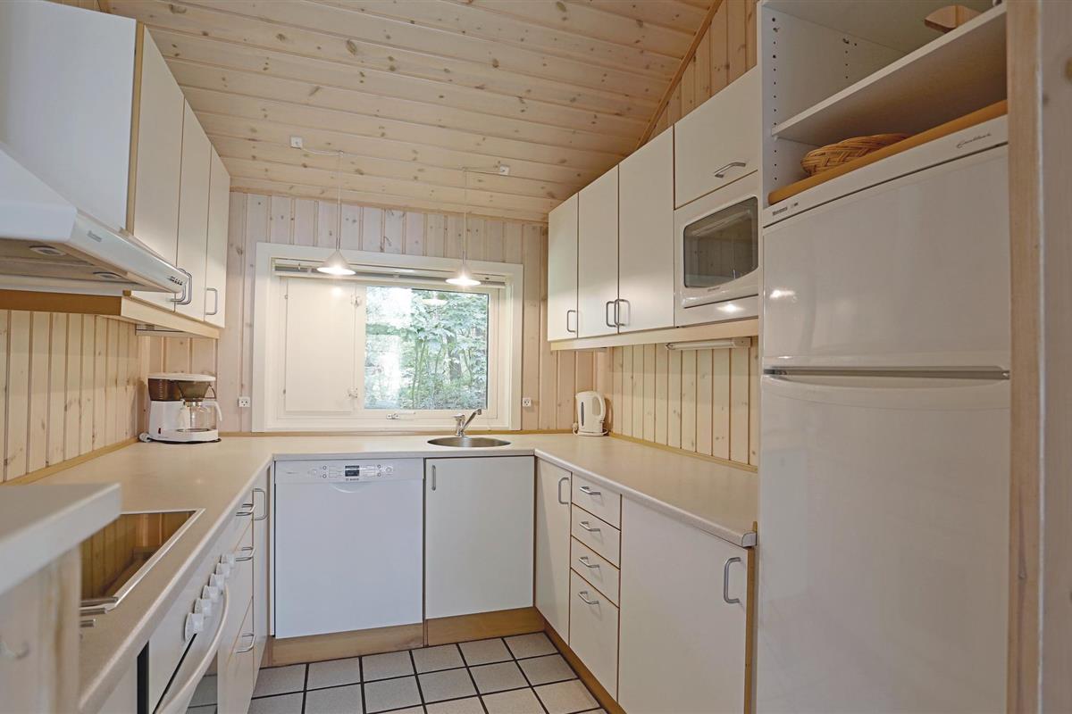 Het charmante vakantiehuis ligt op een groene locatie in de buurt van een zandstrand en winkelmogelijkheden. Binnen is het huis mooi en voorzien van diverse comfortabele faciliteiten. De mooie keuken is open verbonden met de woonkamer, waar u ook een houtkachel vindt. Op koele avonden zorgt deze voor aangename warmte en een fijne sfeer. Het mooie, grote houten terras is perfect voor vele ontspannende uren in de frisse lucht tijdens de zomermaanden.