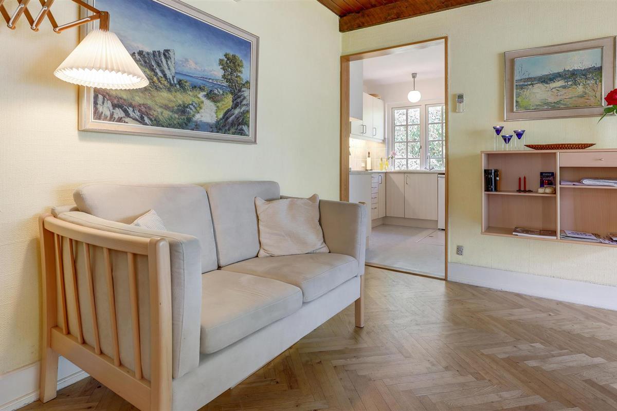 Charmant vakantiehuis uit 1936 aan de eerste rij van het strand met prachtig zeezicht en ruime tuin in Nexø, Bornholm.