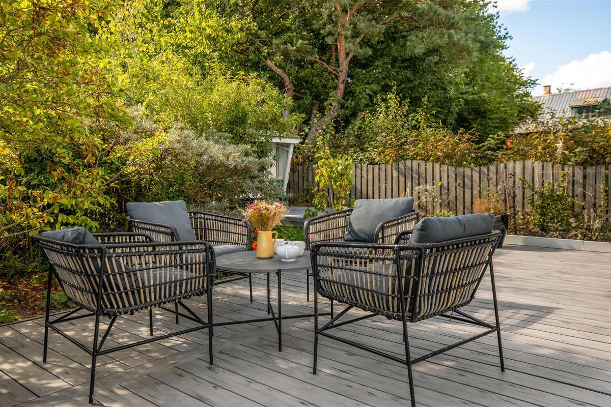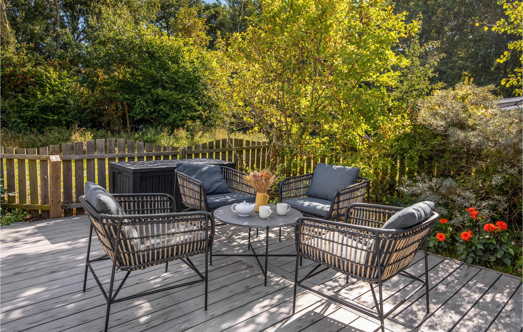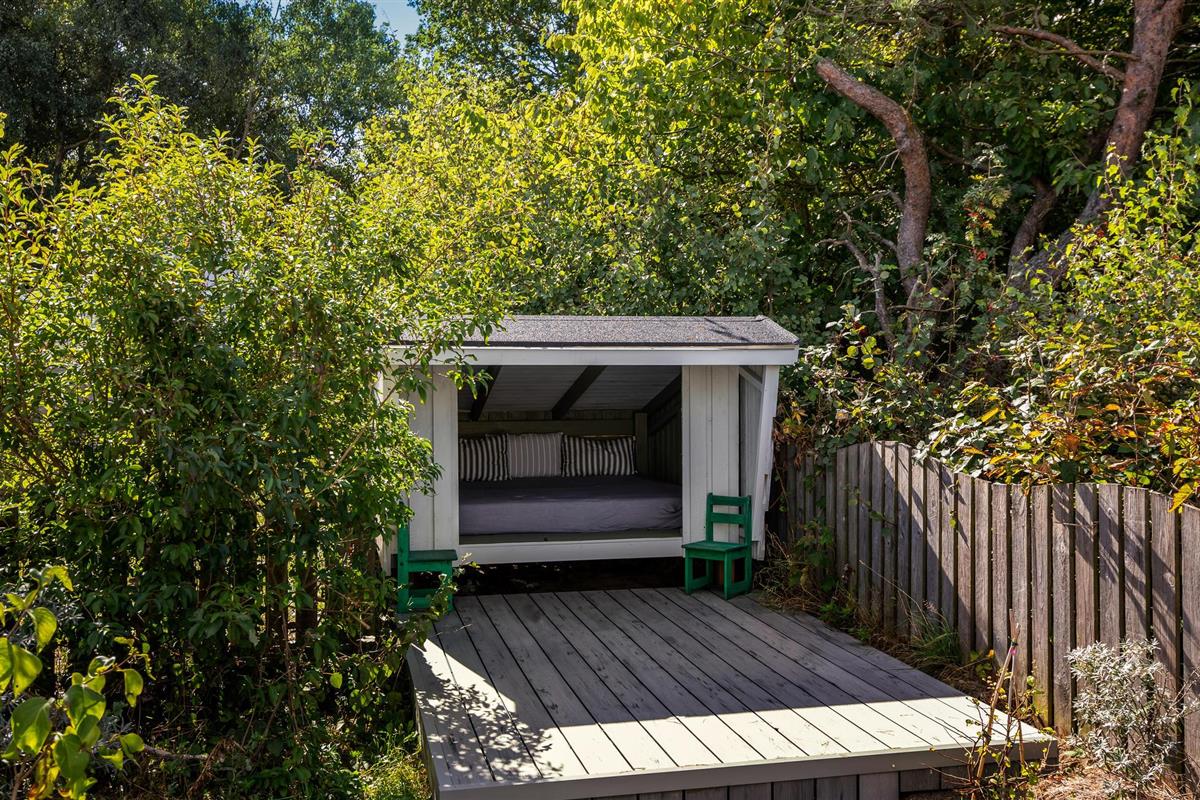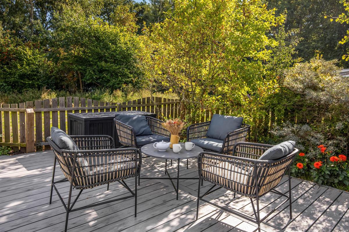 De buitenruimte nodigt je uit om te vertoeven met een gedeeltelijk overdekt houten terras en tuinmeubilair van hoge kwaliteit. Bereid heerlijke maaltijden op de gasbarbecue of ontspan op de ligstoelen met uitzicht op zee. De ruime ligweide biedt veel ruimte voor kinderen om te spelen en leidt direct naar het strand, ideaal voor een verfrissende duik of een wandeling langs het water.