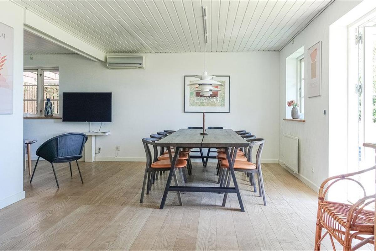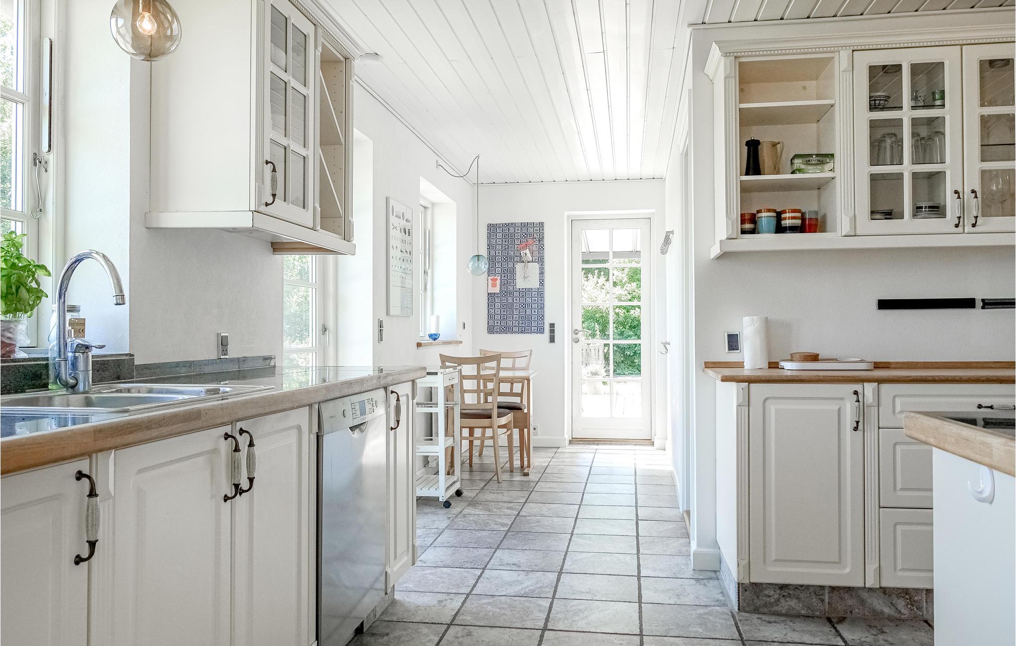 Je vakantiehuis op Bornholm maakt indruk met zijn ligging direct aan het strand en de nabijheid van het charmante Snogebæk. Het huis verwelkomt je met een stijlvol en goed doordacht interieur. De ruime woonkamer op de begane grond is een gezellige ontmoetingsplek, voorzien van comfortabele meubels, een houtkachel voor de koelere dagen en een grote eettafel voor gezamenlijke maaltijden. De ruime keuken met uitzicht op zee maakt koken tot een waar genoegen. Voor je ontspanning biedt de badkamer een whirlpool, en op de bovenverdieping wacht nog een woonkamer op je.
