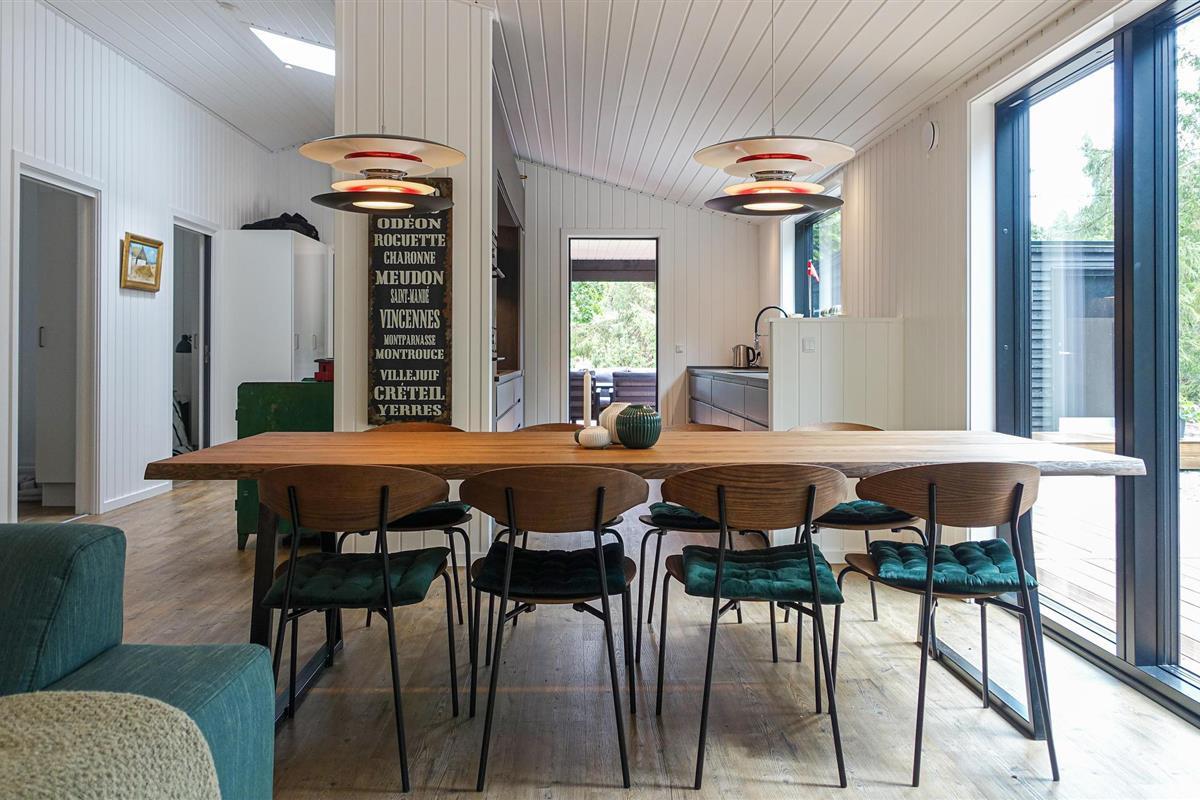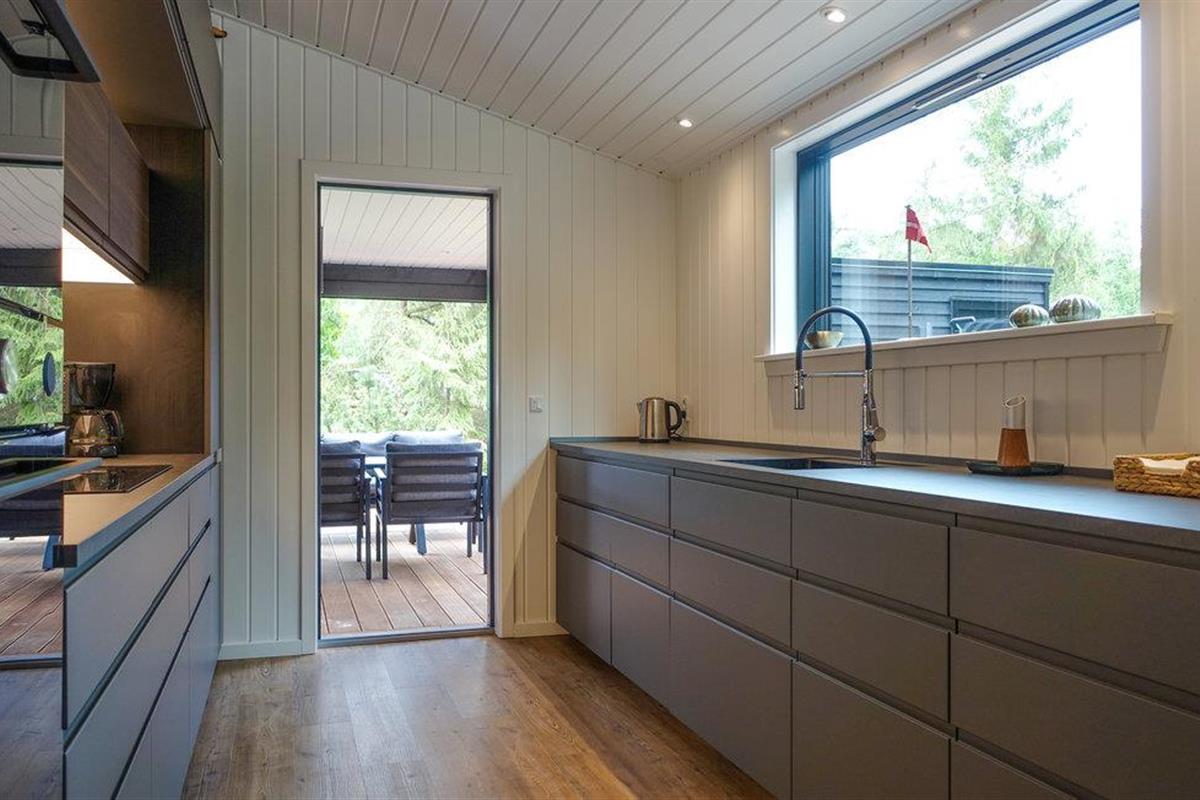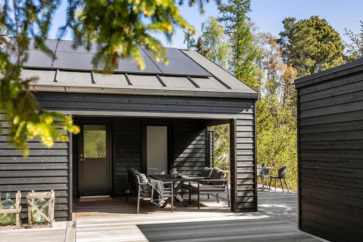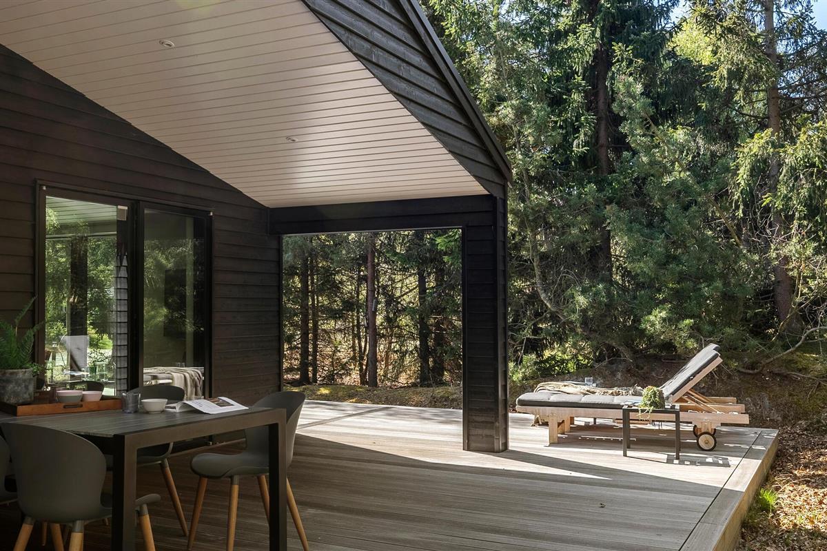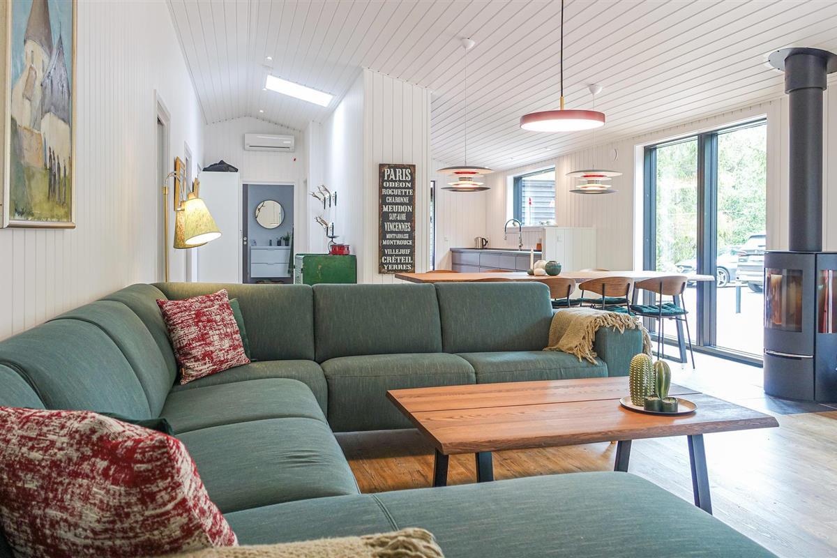 Zeer mooi en charmant onder architectuur gebouwd vakantiehuis uit 2020 op een natuurgrondstuk, op slechts 400 meter van het mooie, kindvriendelijke zandstrand en op slechts 900 meter van het gezellige Snogebæk met winkels, kiosken en restaurants.