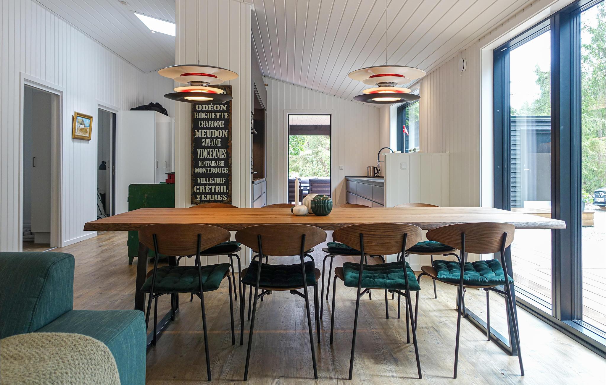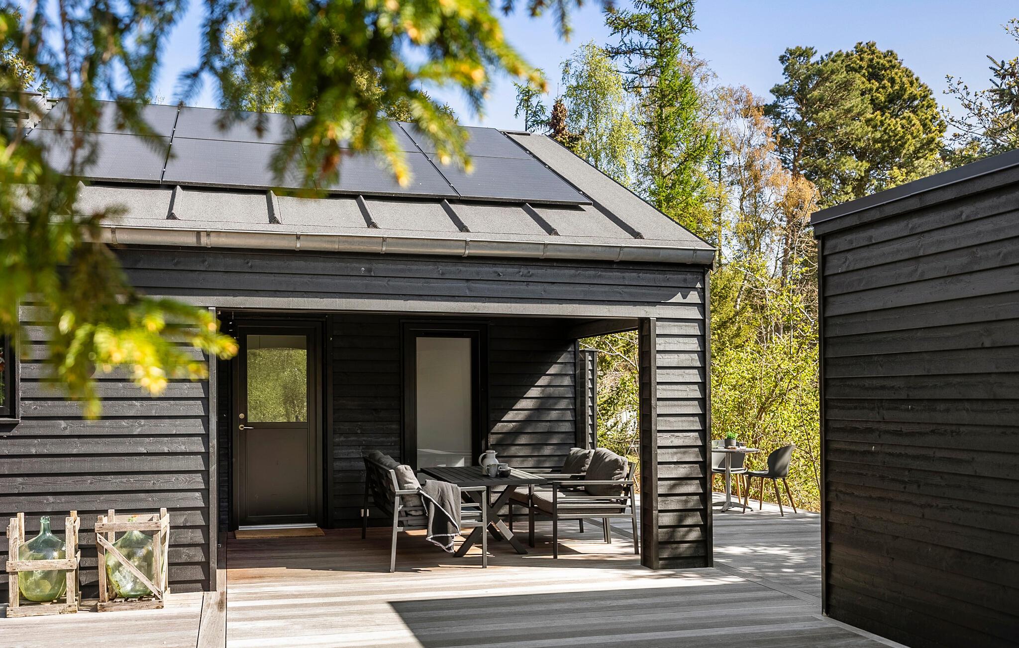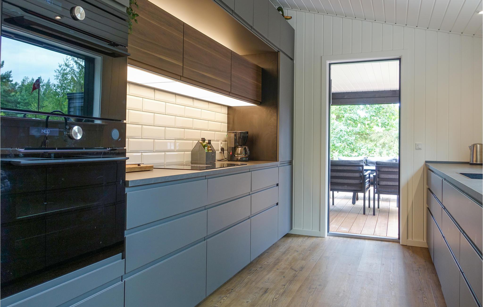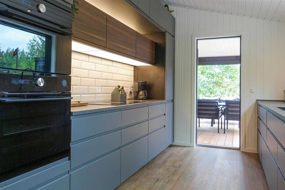 Zeer mooi en charmant onder architectuur gebouwd vakantiehuis uit 2020 op een natuurgrondstuk, op slechts 400 meter van het mooie, kindvriendelijke zandstrand en op slechts 900 meter van het gezellige Snogebæk met winkels, kiosken en restaurants.