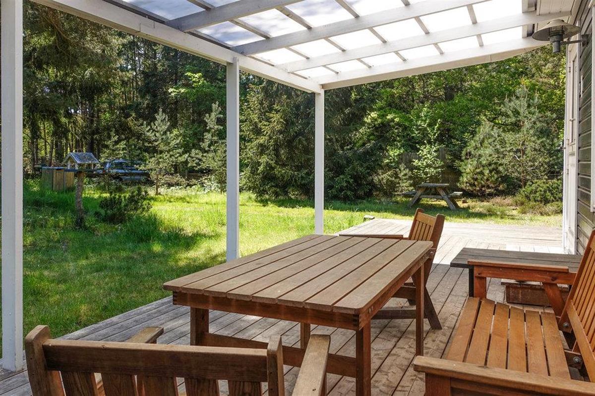Bij mooi weer kunt u het vakantiegezelschap verplaatsen naar het terras met barbecue en loungemeubilair. Rondom het huis ligt een prachtig terrein waar u kunt luisteren naar het gezang van de vogels en kunt genieten van de frisheid van de natuur.