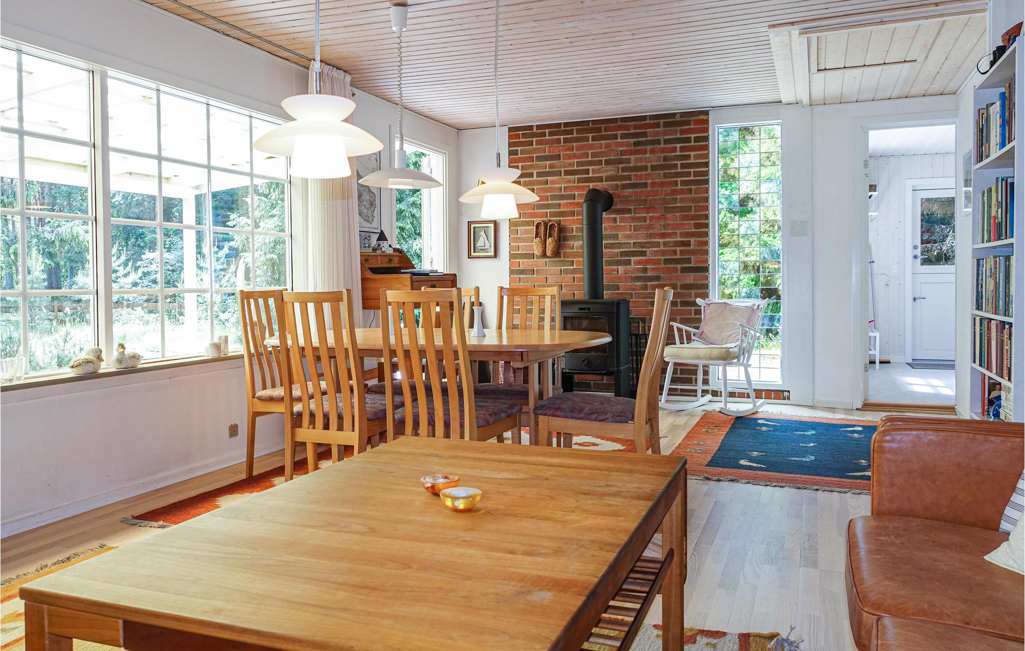 Het huis ligt op een mooi, afgelegen natuurperceel, 400 m van het strand en de charmante kustlijn. Binnenpret of zon in de tuin, hier beleeft u dromerige vakantiedagen. In de woonkamer kunt u op kille dagen de houtkachel opstoken en lekker koken in de keuken, terwijl de kinderen gezellig op de zachte kussens in de woonkamer kruipen. Naast de drie slaapkamers in het huis is er ook een praktische aanbouw met twee bedden.