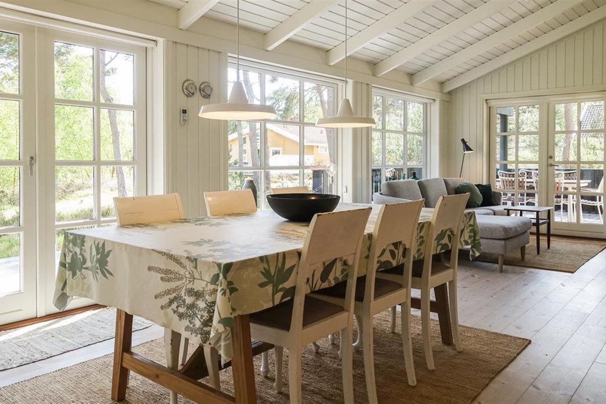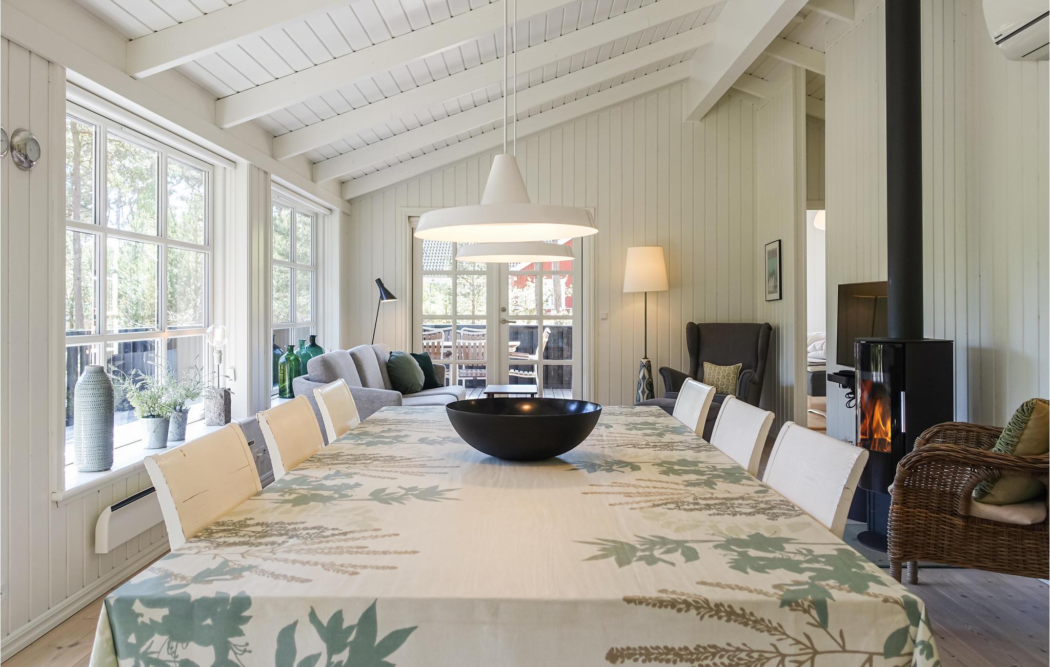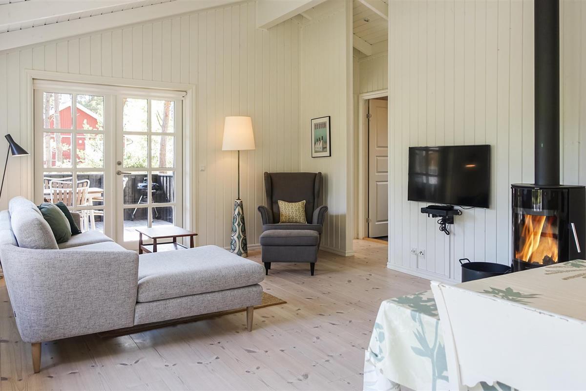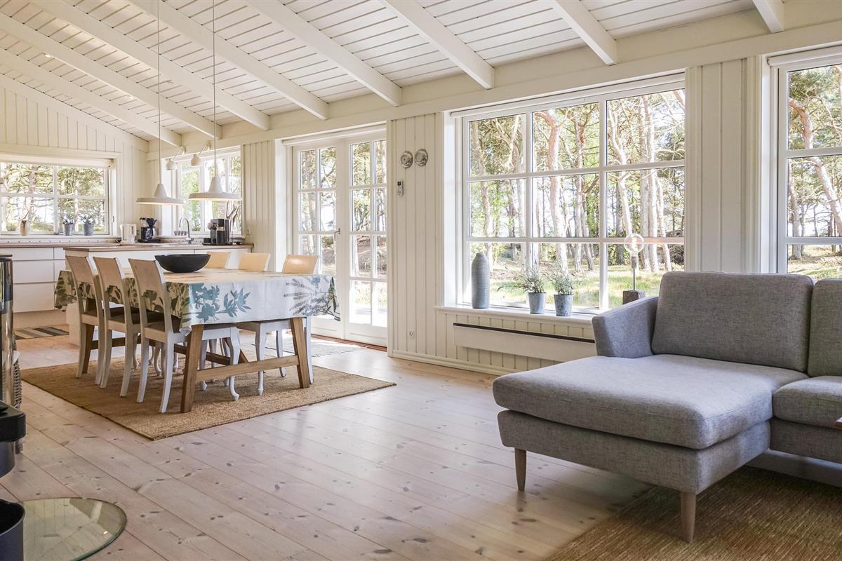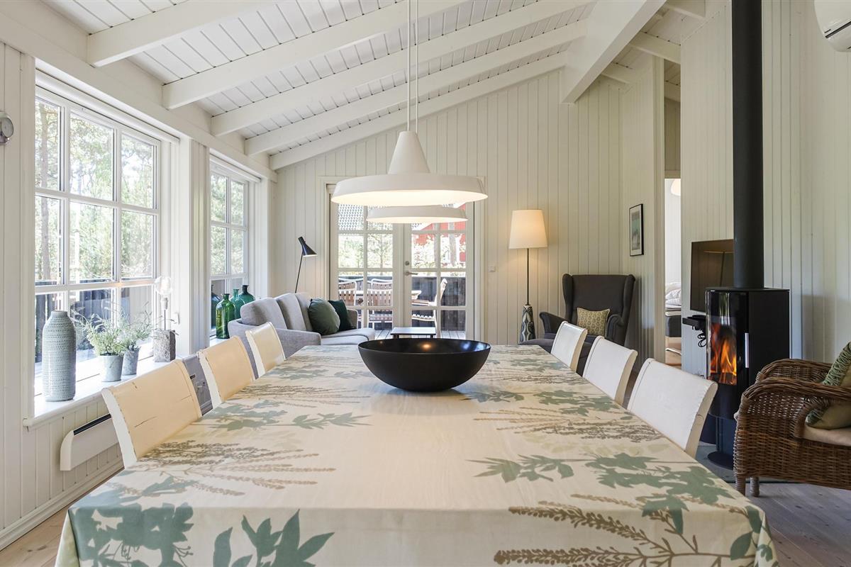 Het huis heeft geschilderde muren en plafonds, houten vloeren met extra brede vloerdelen en is ruimtelijk open tot aan de gevel, waardoor een ruime, huiselijke en lichte sfeer ontstaat. Of het nu gaat om binnenpret of zon in de tuin, u zult hier heerlijke vakanties beleven. In de woonkamer kunt u op kille dagen de houtkachel opstoken en lekker koken in de keuken, terwijl de kinderen gezellig op de zachte kussens in de woonkamer kruipen.