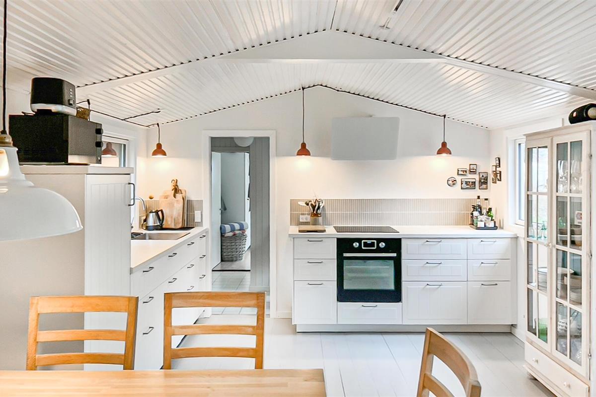 In de eerste rij naar het goede zandstrand ligt dit gezellige vakantiehuis met een goed, op het oosten gelegen houten terras en een mooie inrichting. Het huis heeft een gezellige woonkamer met uitgang naar het terras op het zuiden, evenals een heerlijk grote ouderslaapkamer met directe toegang tot het mooie houten terras. Vanuit de woning kunt u direct naar het strand lopen en hier vele heerlijke vakantie-uurtjes doorbrengen. Binnen een paar minuten lopen bereikt u de gezellige winkels en restaurants van Snogebæk, evenals een echte Bornholmse rokerij en een jachthaven. Ook per fiets kunt u de omgeving goed verkennen. Een goed en aantrekkelijk gelegen vakantiehuis.