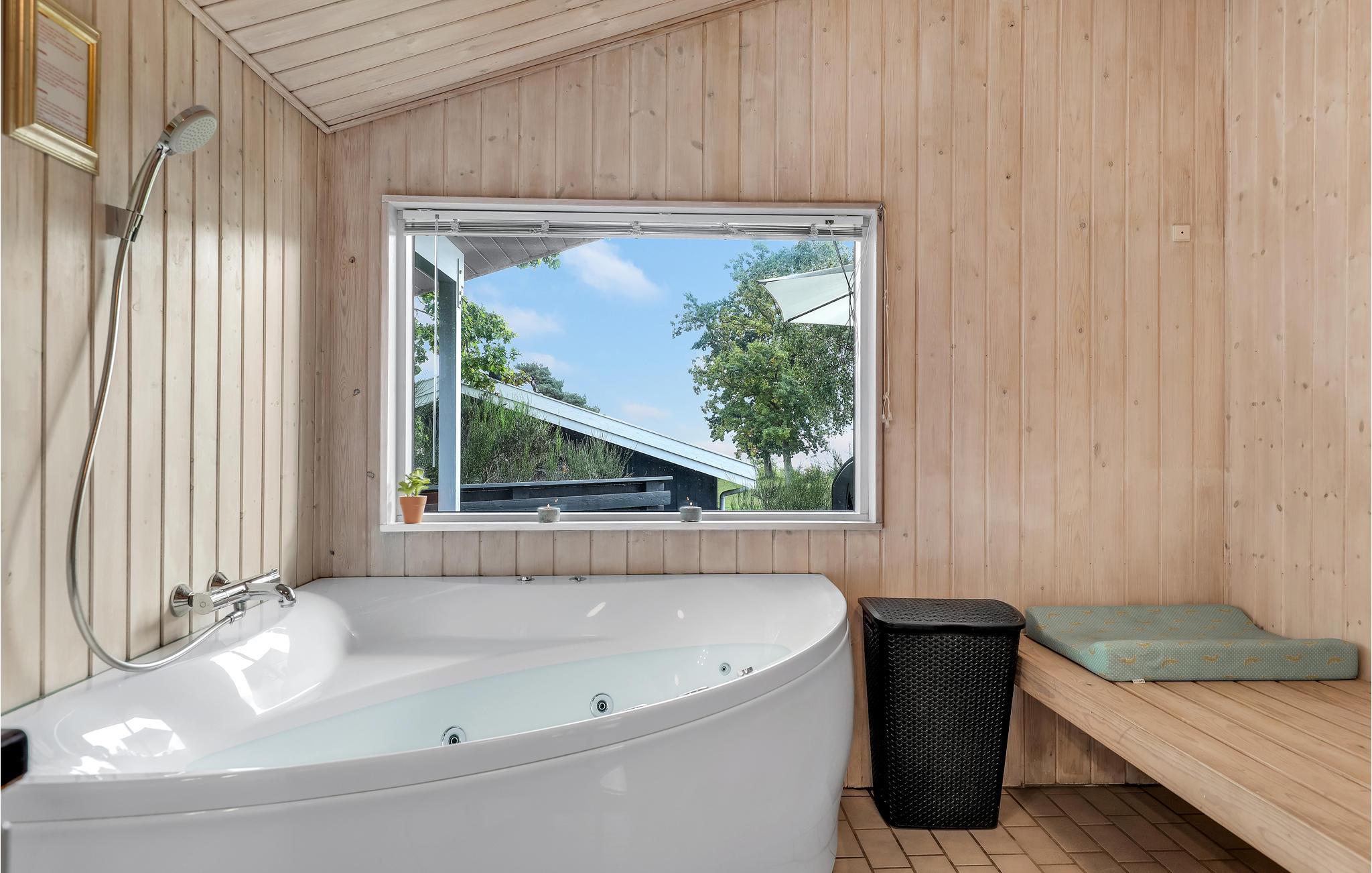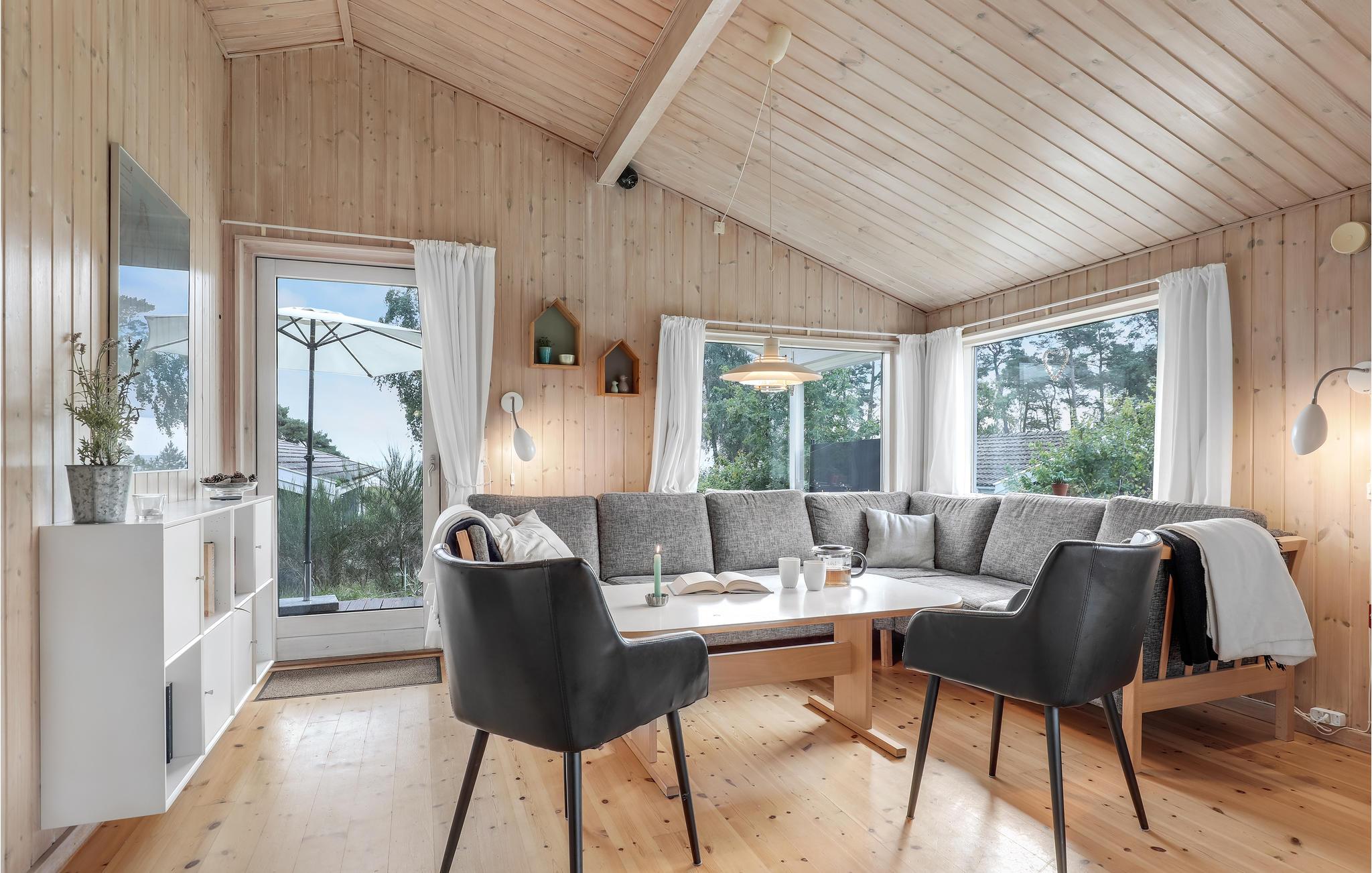 Aantrekkelijk en netjes ingericht kwaliteitshuis met een ligging dicht bij het zandstrand en met uitzicht op zee. De nederzetting heet Strandbo en bestaat verder uit 17 vakantiehuizen en een gemeenschappelijk perceel. Hier is de natuur prachtig en de nederzetting ligt direct aan het strand. De woonkamer heeft een uitgang naar het houten terras, vanuit comfortabel tuinmeubilair kunt u hier genieten van het uitzicht. Ook de grote badkamer met massagebad en sauna nodigt uit tot een goed gevoel. Dit alles wordt gecompleteerd door een gastentoilet, vier slaapkamers, een open keuken en een mooie eetkamer. Ook is er gratis internet, een houtkachel en smart tv met Netflix. Kubb en jeu de boules zijn ook beschikbaar. Vakantiehygiëne vindt hier plaats! Niet ver weg zijn een visrokerij, leuke winkels en een jachthaven in het populaire Snogebæk.