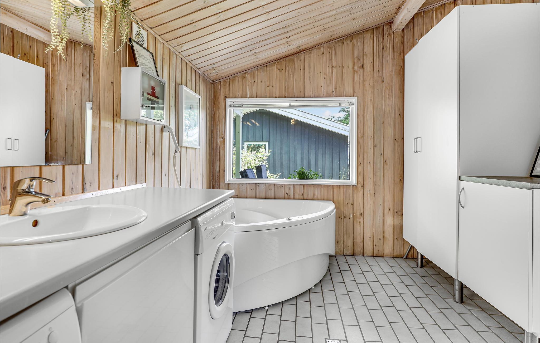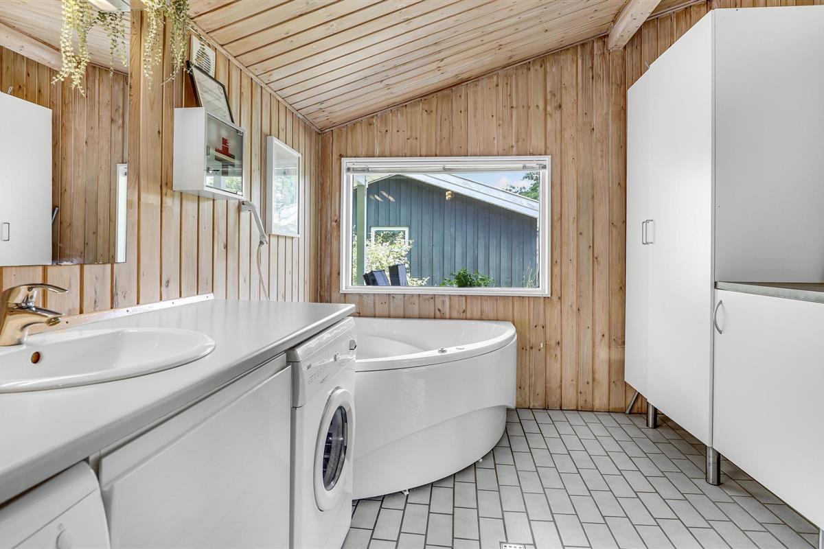Mooi en goed onderhouden kwaliteits vakantiehuis nabij een mooi zandstrand en met zijzeezicht in het populaire gebied" Strandbo "met in totaal 17 vakantiewoningen op een groot gemeenschappelijk perceel (16000 m²) met prachtige natuur en dicht bij het strand. Goed onderhouden met een mooie woonkamer met toegang tot een goed houten terras met leuk tuinmeubilair waar u heerlijk kunt genieten van uw vakantie. In dit mooie vakantiehuis heeft u ook een grote badkamer met whirlpool en sauna evenals een gastentoilet, 4 slaapkamers en een mooie en modern ingerichte open keuken. Uiteraard is er gratis internet en een houtkachel, kortom in elk jaargetijde is dit een goede uitvalsbasis voor een heerlijke vakantie op Bornholm. De nabijheid van de zee, het strand en de prachtige natuur en de nabijheid van het vakantiehuis bij winkeltjes, winkels en restaurants op loopafstand maken dit vakantiehuis het hele jaar door aantrekkelijk.