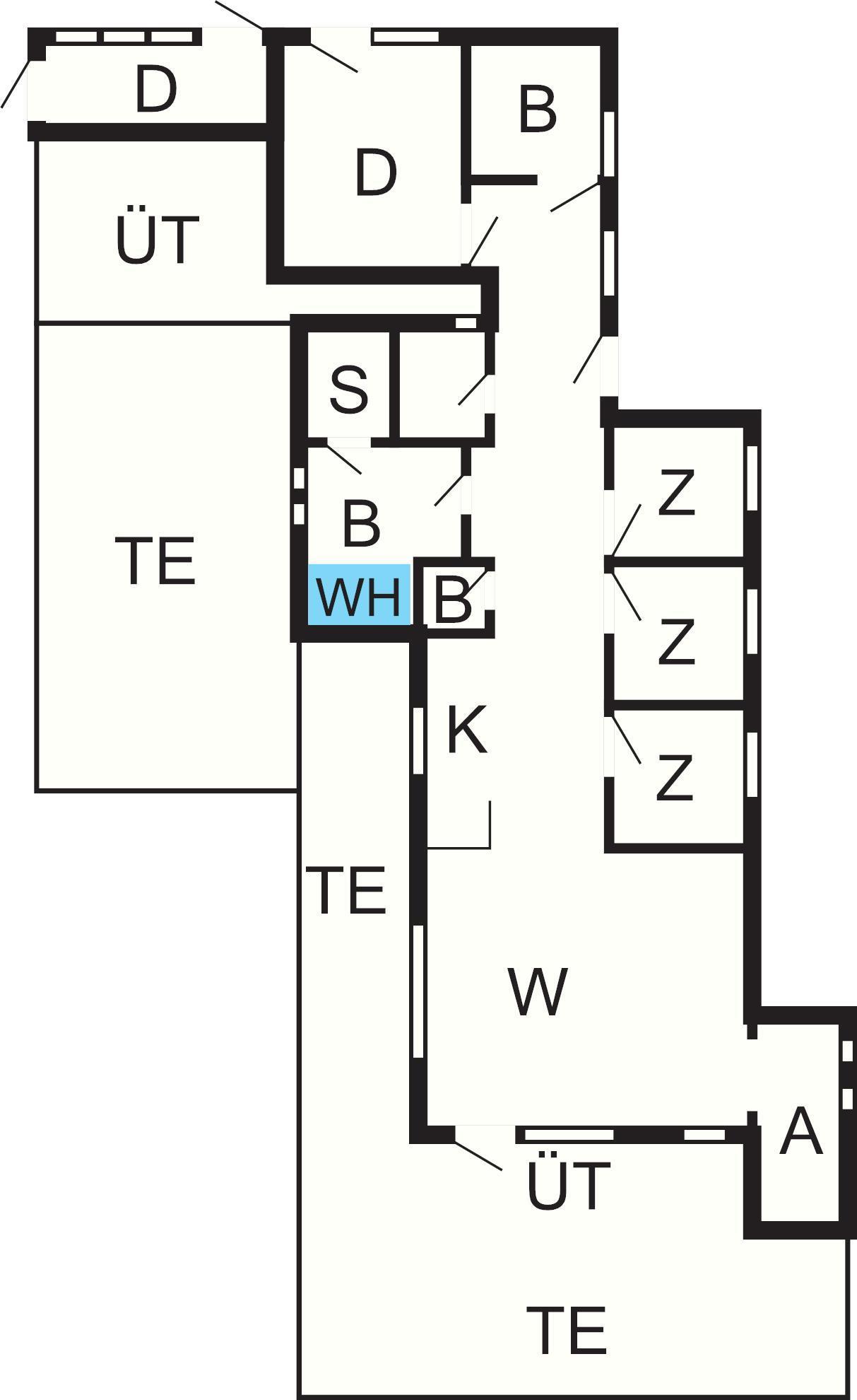 Bad: WC, Waschb., Dusche, Fußbodenheiz.