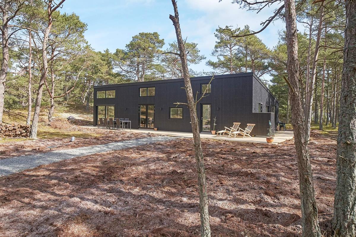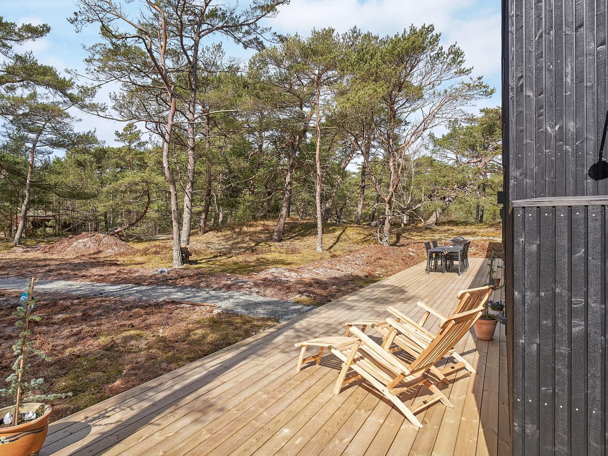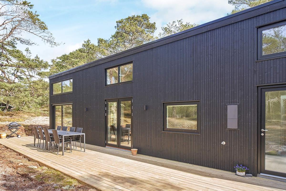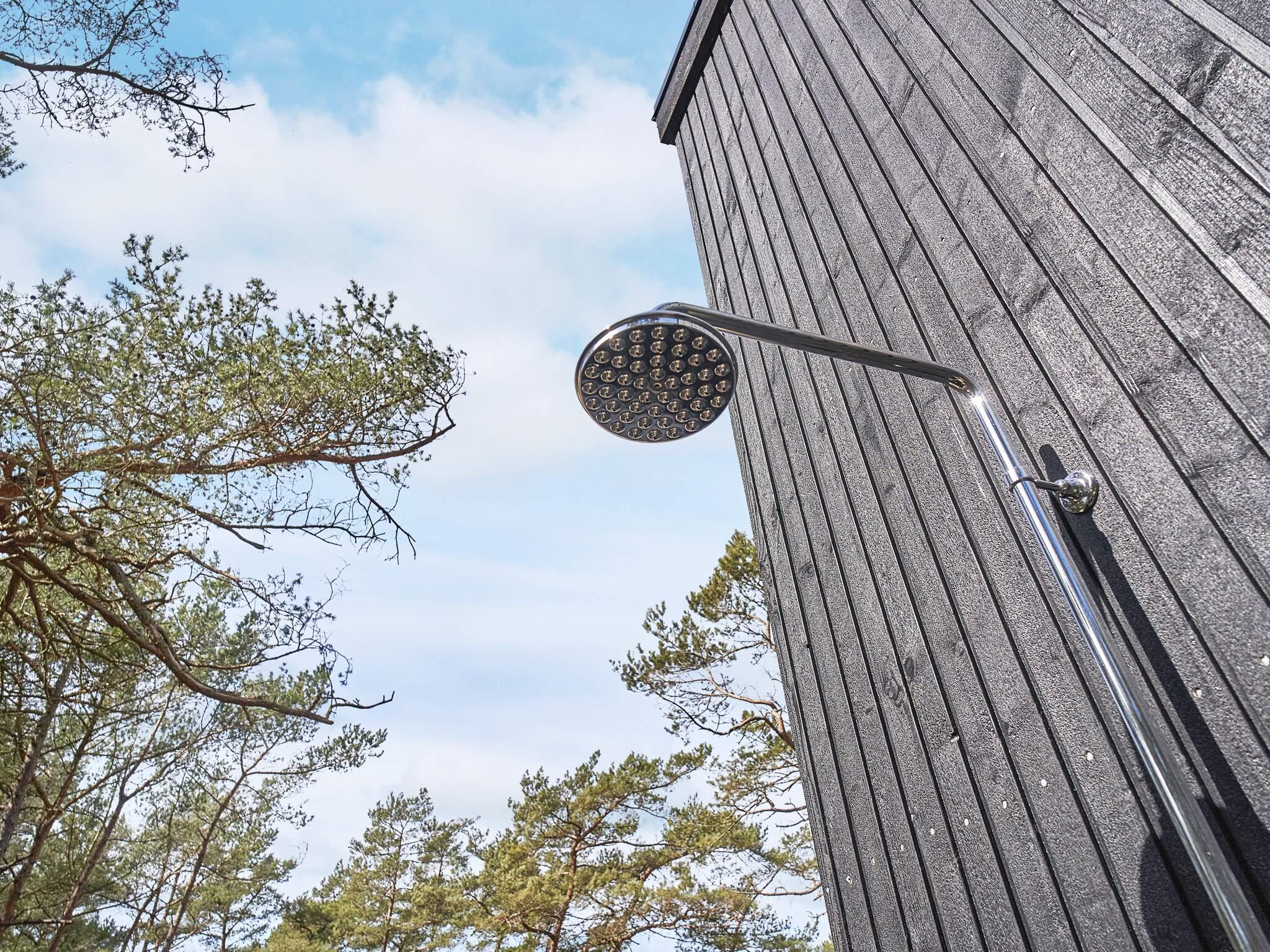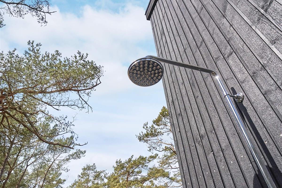 Auf der Holzterrasse findet man gepflegte Gartenmöbel vor. Die attraktive Lage des Hauses bietet Möglichkeiten für Ausflüge in die umliegende Natur und an den Strand. Nach dem Bad im Meer kann man Salz und Sand unter der praktischen Außendusche abspülen. Nicht weit entfernt finden Sie auch den Golfplatz von Dueodde.