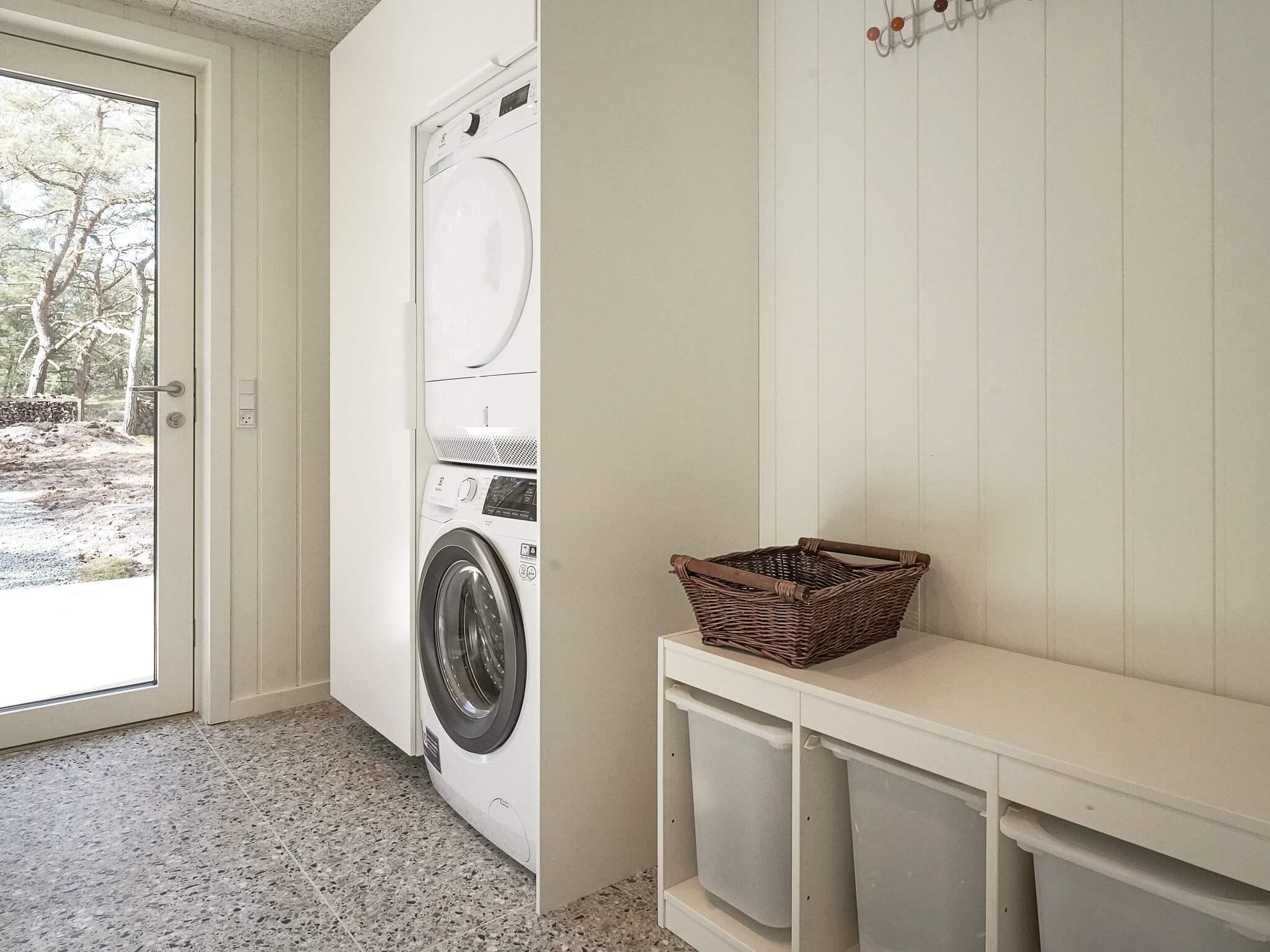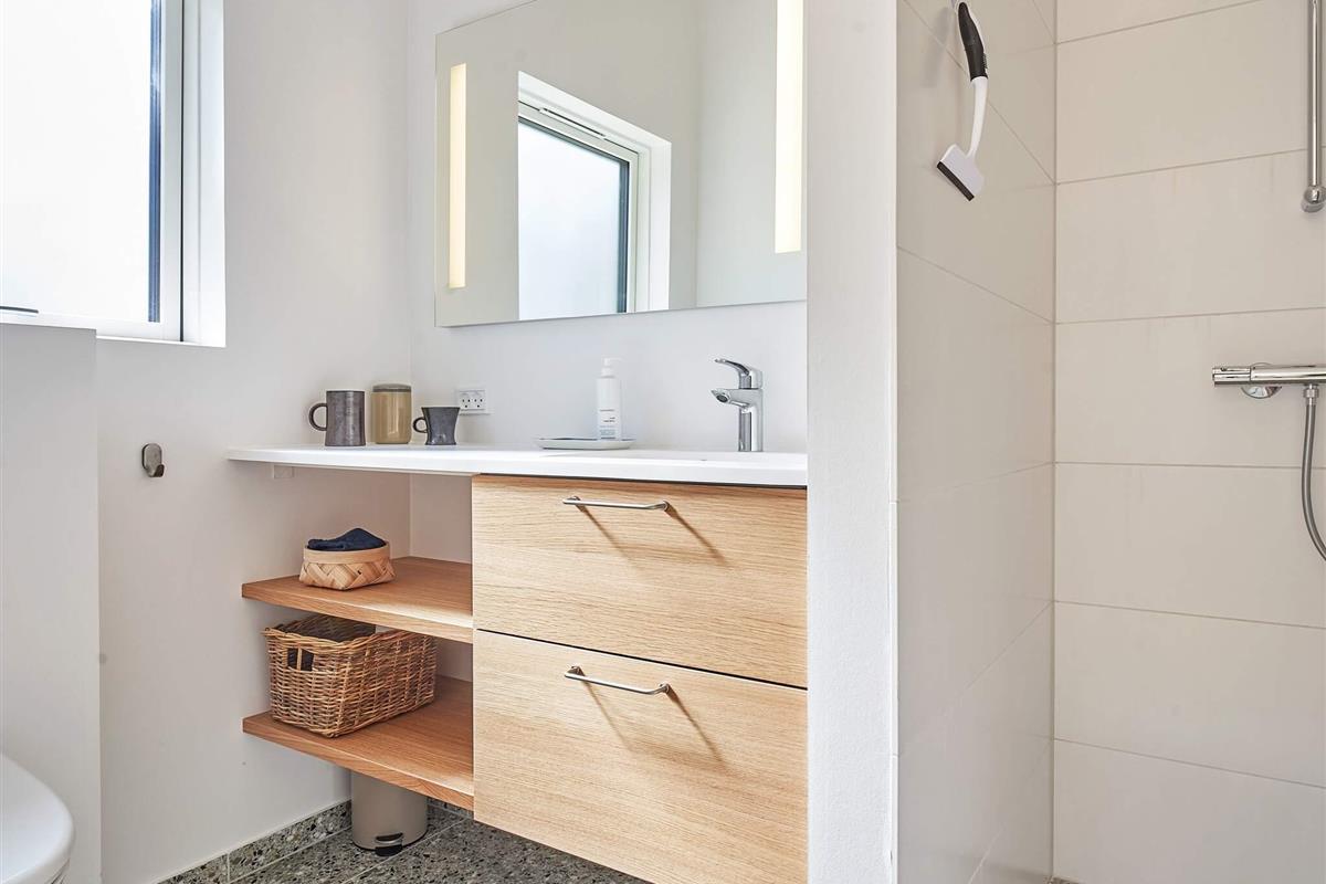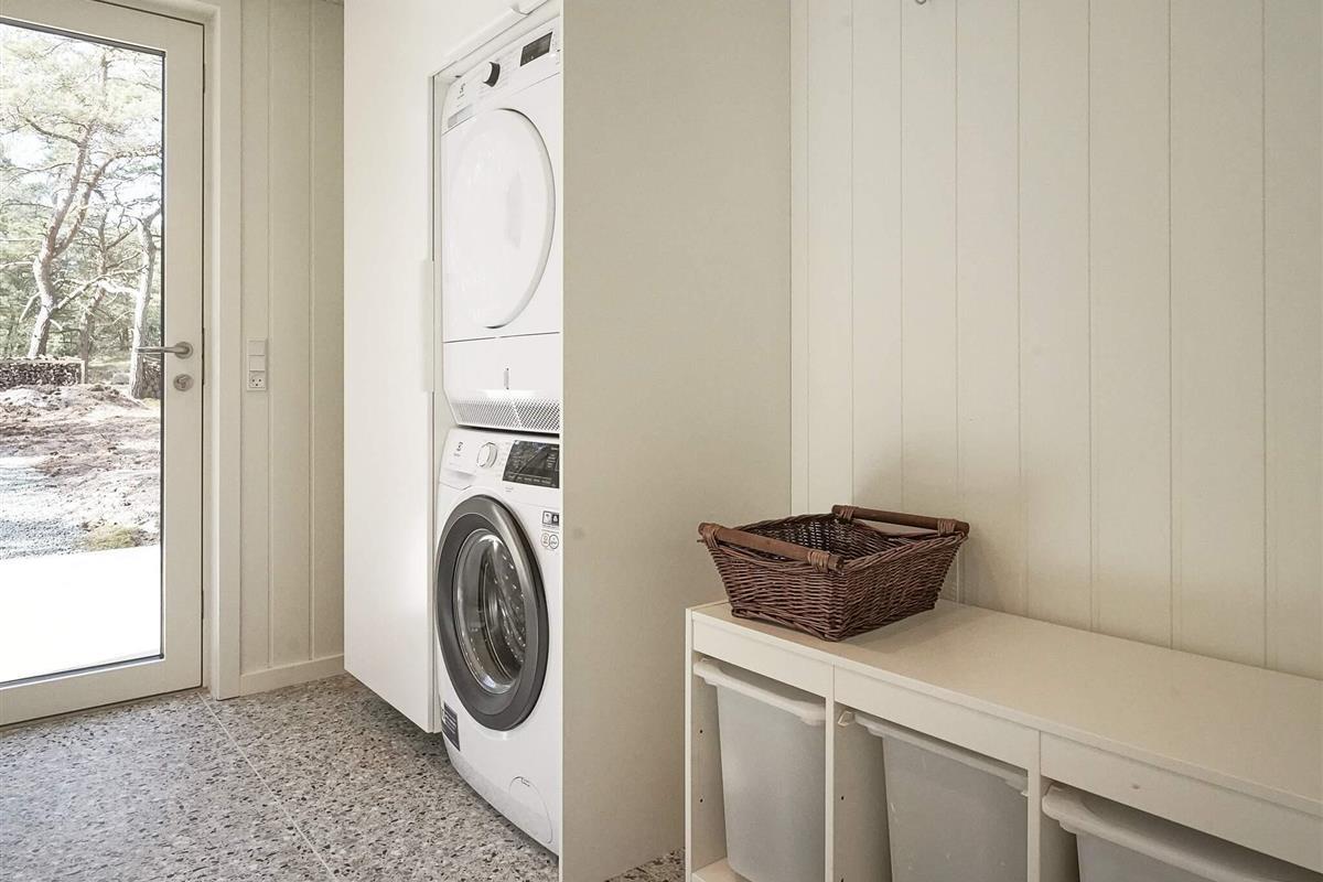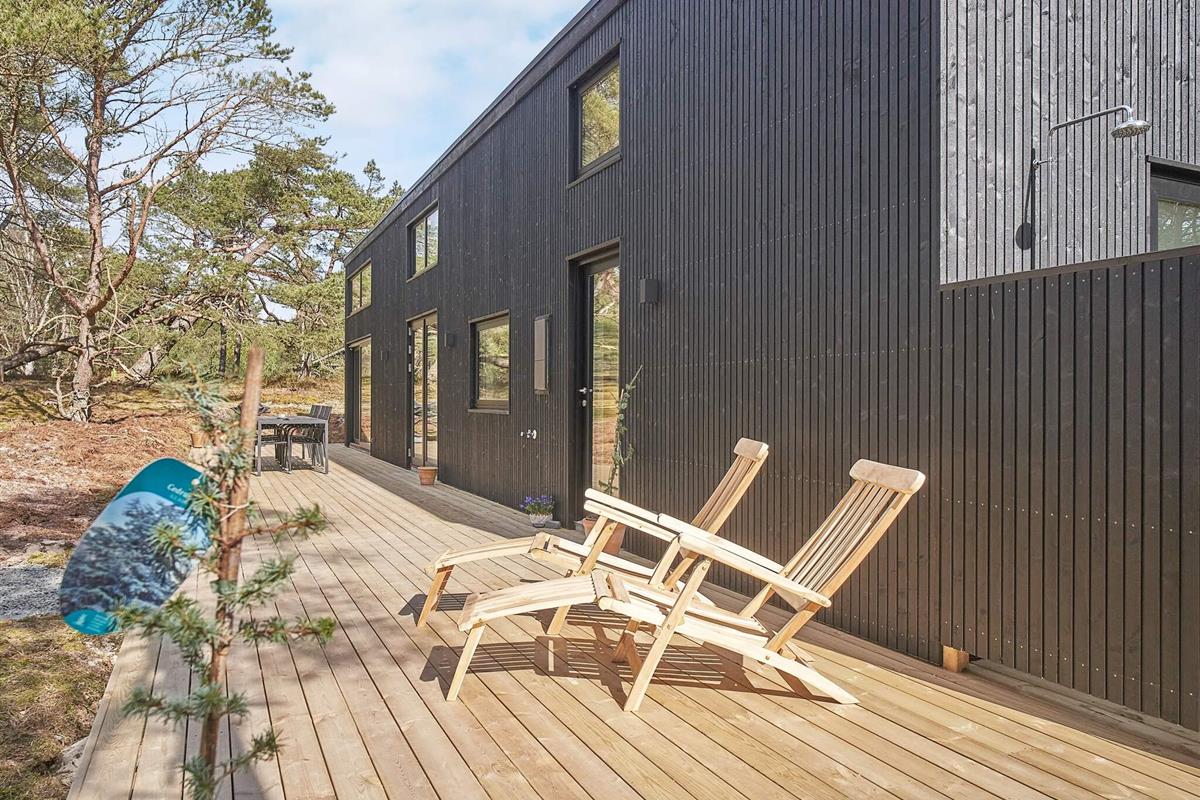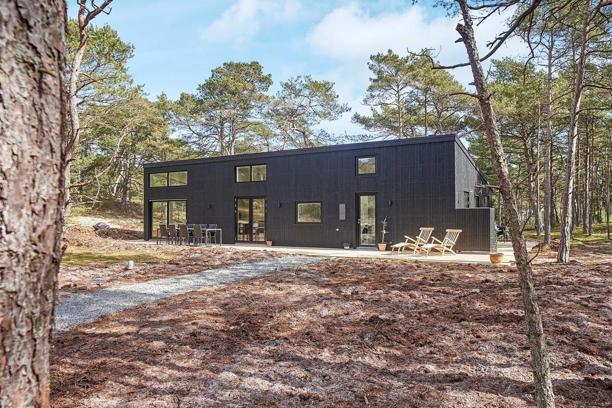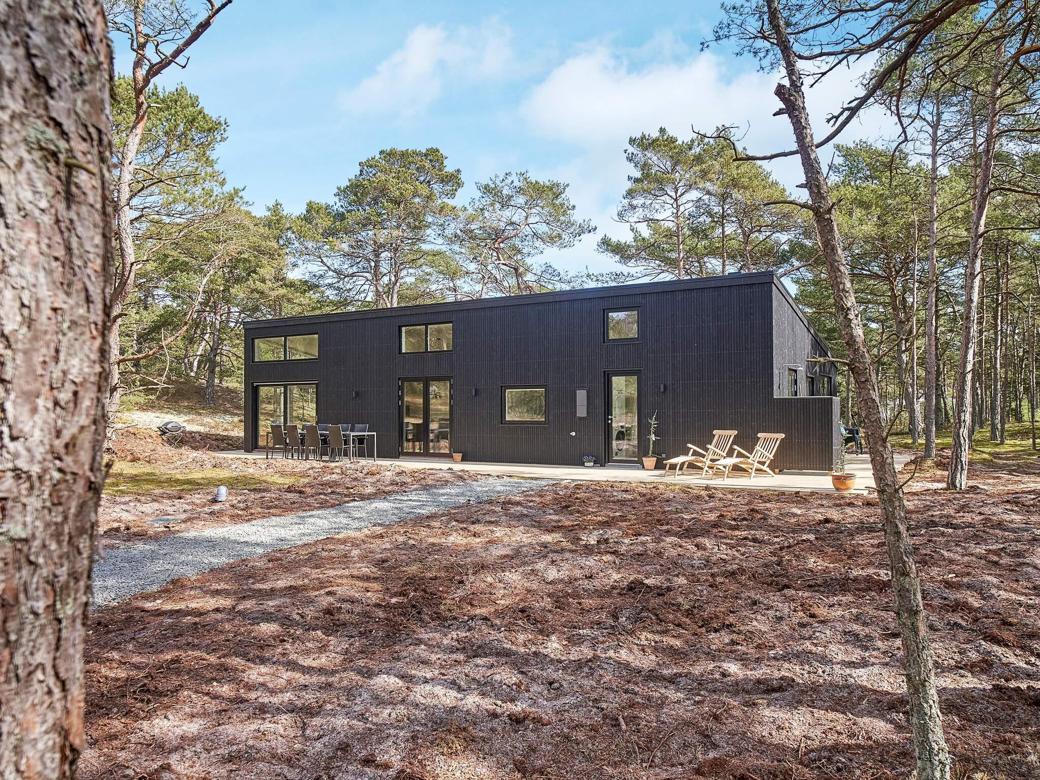 Auf der Holzterrasse findet man gepflegte Gartenmöbel vor. Die attraktive Lage des Hauses bietet Möglichkeiten für Ausflüge in die umliegende Natur und an den Strand. Nach dem Bad im Meer kann man Salz und Sand unter der praktischen Außendusche abspülen. Nicht weit entfernt finden Sie auch den Golfplatz von Dueodde.