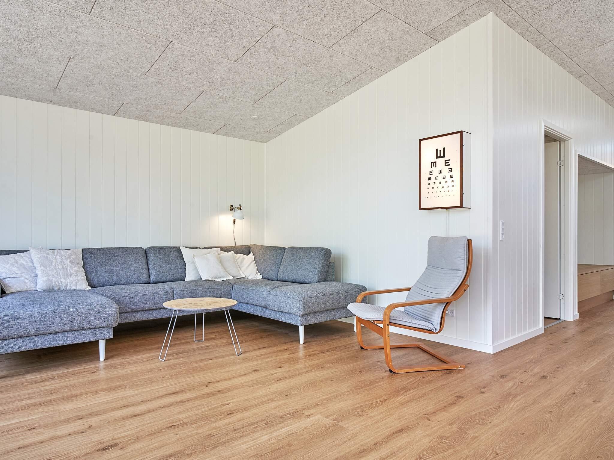 Im geräumigen Wohnzimmer gibt es bequemes Mobiliar sowie freies WLAN und Apple-TV zur Unterhaltung. Die klimafreundliche Wärmepumpe des Hauses sorgt dafür, dass das Familienzimmer wohlig temperiert ist.