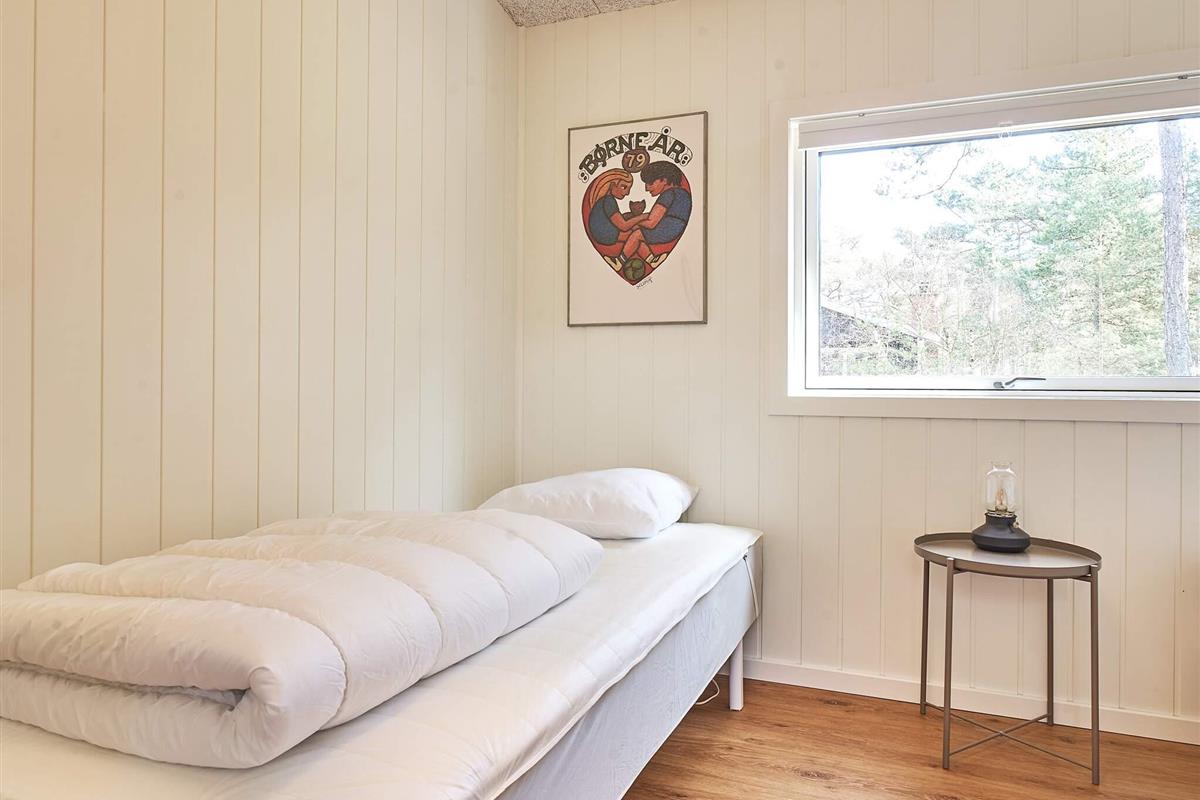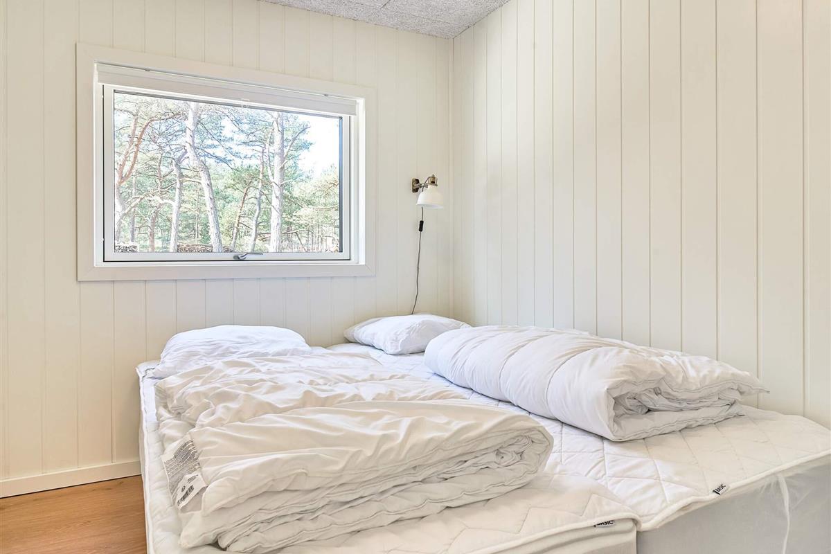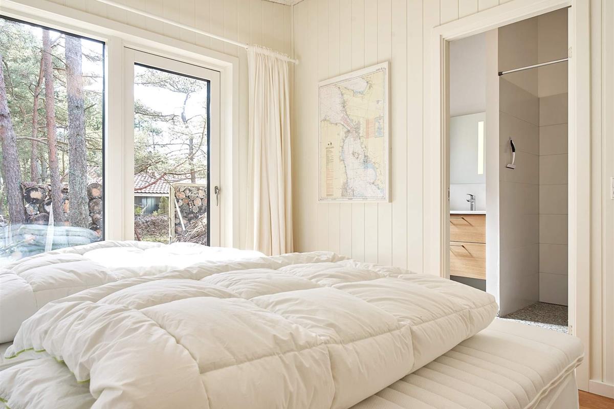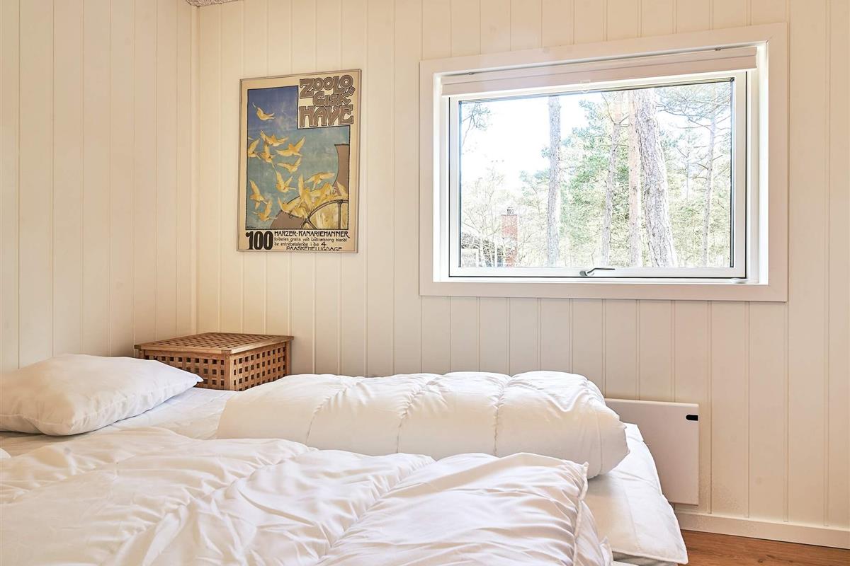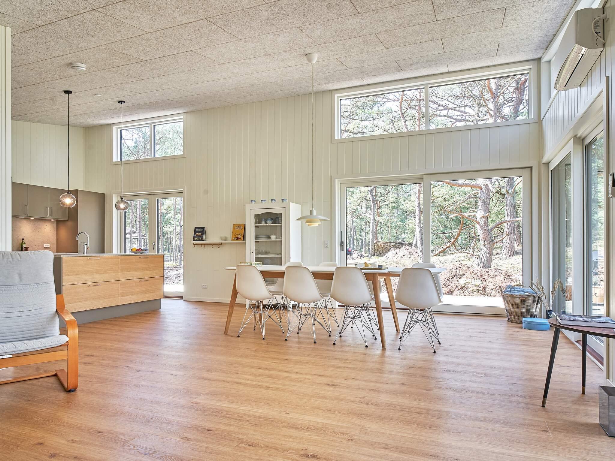 Das 2023 erbaute, besonders helle Ferienhaus bietet eine gute Raumhöhe und hat einen offenen, einladenden Küchen-/Wohnbereich für das Familienleben mit einem kleinen, gemütlichen Erker sowie schöner Ess- und Sitzecke mit Blick ins Grüne. Außerdem stehen im Haus vier Schlafzimmer mit je zwei Schlafplätzen in Betten sowie zwei moderne Badezimmer zur Verfügung. Außerdem gibt es ein gemütliches Loft für spielende Kinder.
