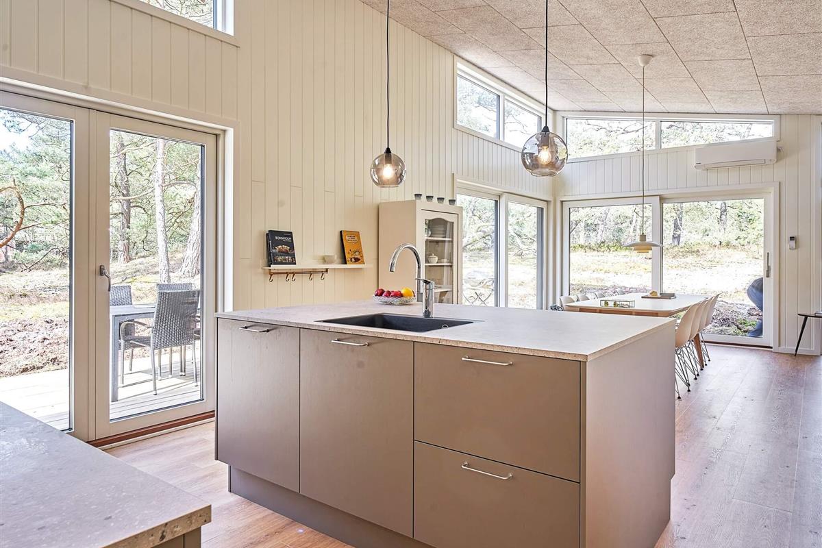 Geräumiges Qualitäts-Ferienhaus mit fantastischem Lichteinfall! Liegt auf einem großen Naturgrundstück in einem attraktiven Ferienhausgebiet in der Nähe des Waldes und eines guten Sandstrandes bei Sommerodde.