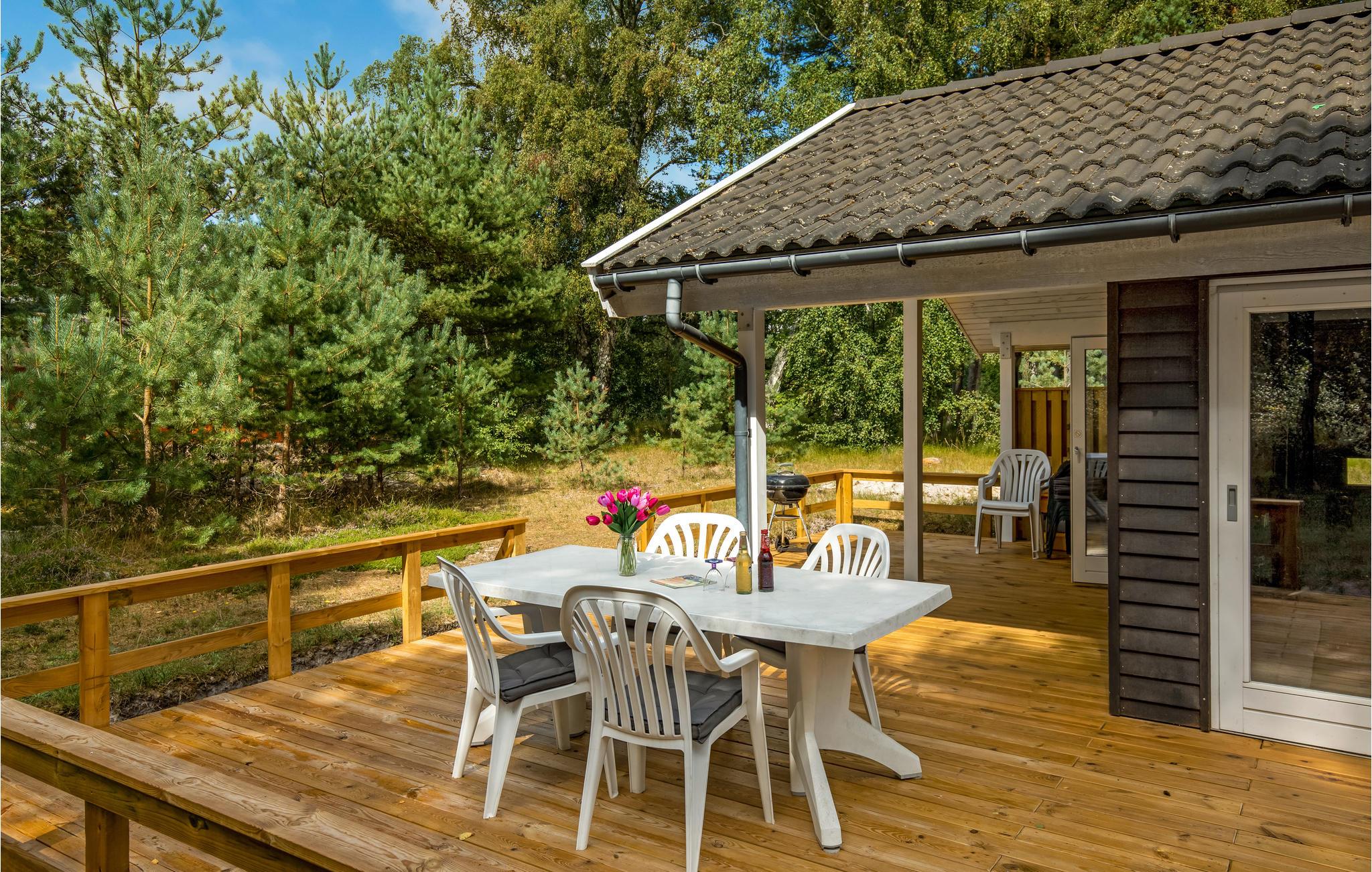 In een prachtig en rustig natuurgebied ligt dit prachtige luxe vakantiehuis. Vanuit de woonkamer en keuken heeft u een prachtig uitzicht op het bos. Het huis ligt op een groot natuurgrondstuk. Buiten is er een houten terras, dat gedeeltelijk overdekt is. Hier woont u op slechts 300 m van zwem- en vismogelijkheden.