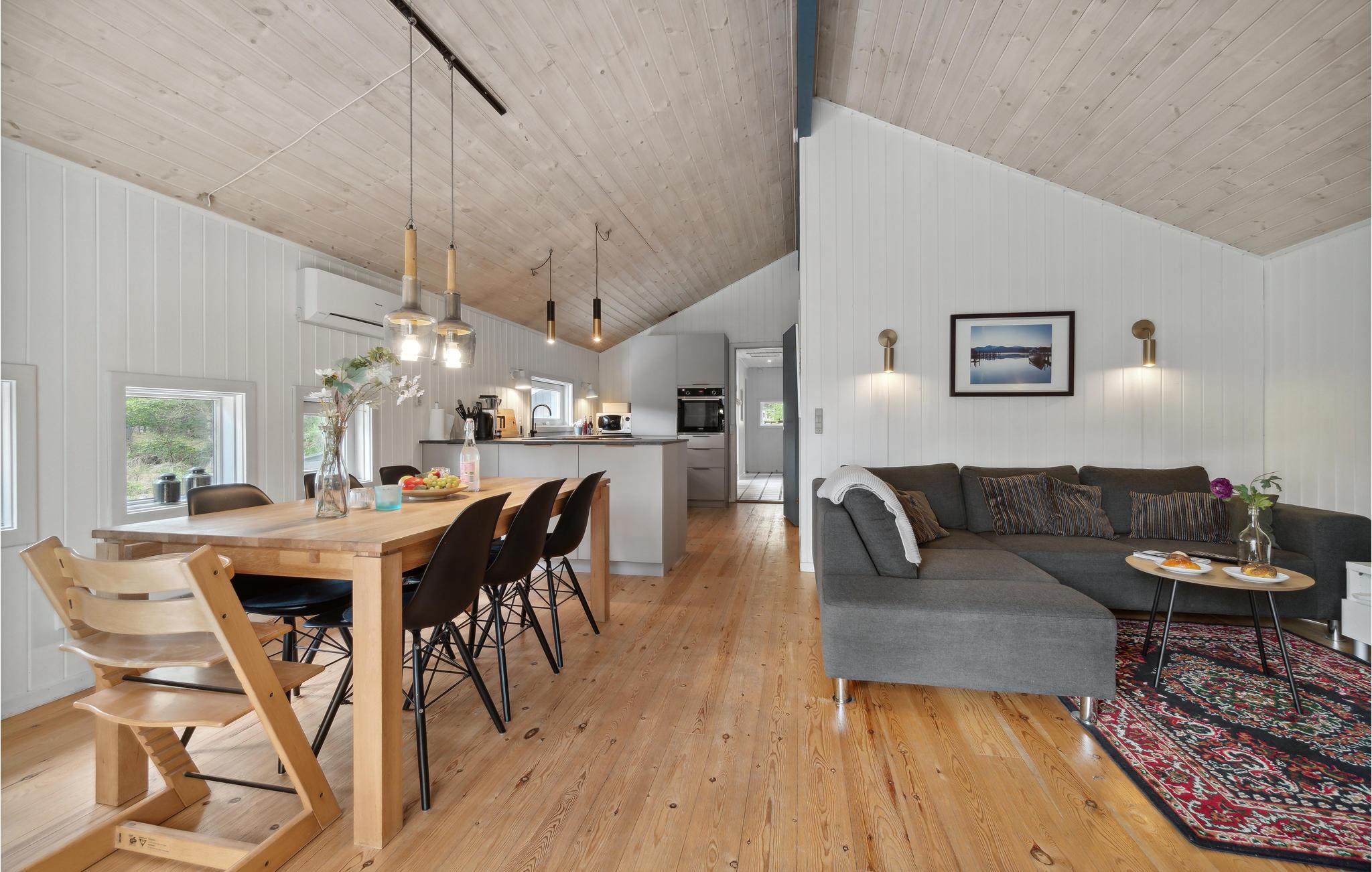 Welkom in dit gezellige huis, gelegen op een mooi natuurperceel in een rustige omgeving dicht bij een mooi zandstrand en de 18-holes golfbaan Dueodde. Het huis is licht en gezellig en heeft veel aantrekkelijke details. Geniet van de behaaglijke warmte van de open haard op een koele dag en geniet van de sfeervolle ambiance met de natuur direct voor het raam. Een grote badkamer met whirlpool en sauna en tal van moderne voorzieningen maken dit huis tot een ideaal vakantiehuis in elk jaargetijde.