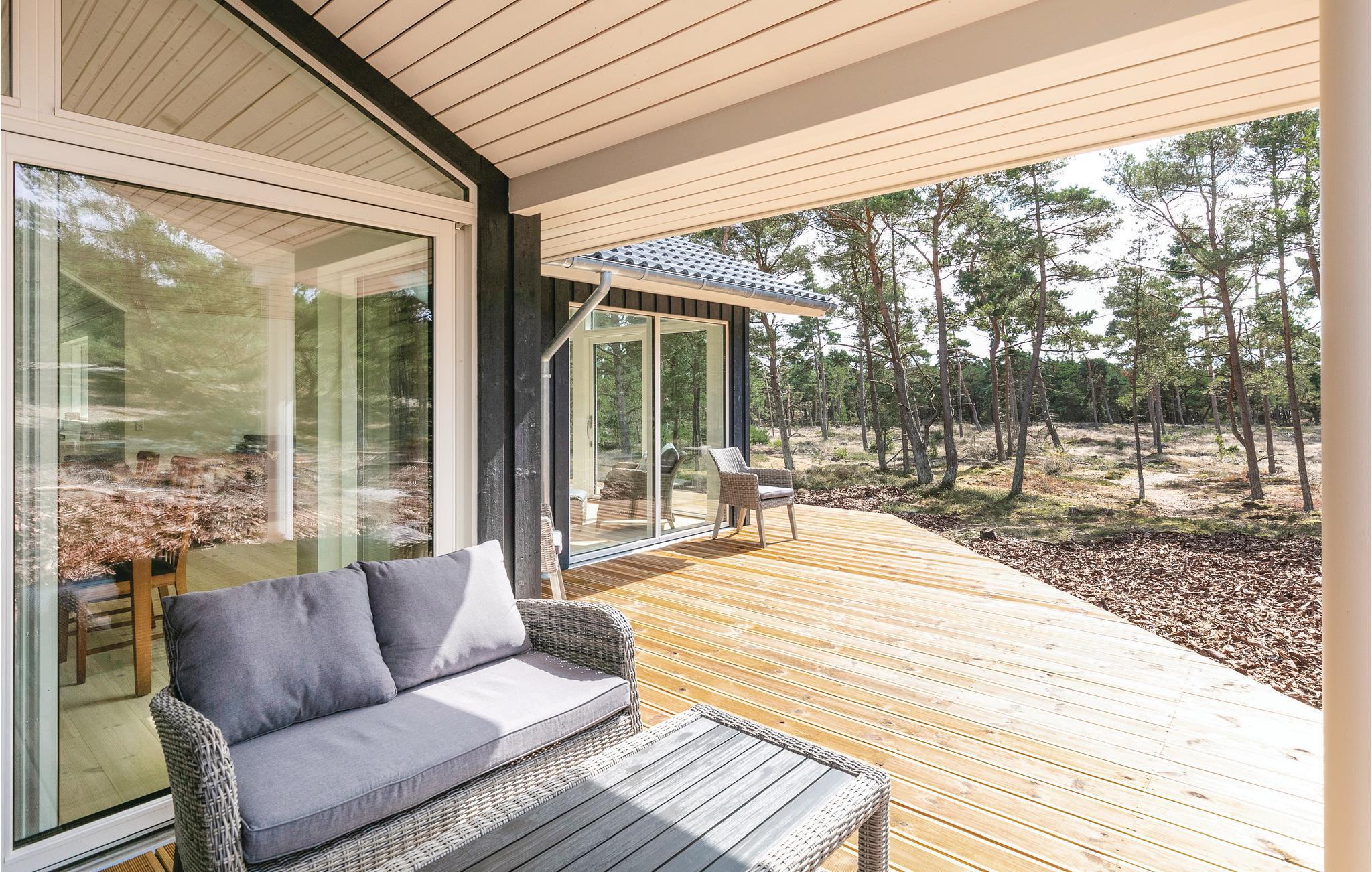 Modern luxe vakantiehuis met veel ruimte en eigentijdse inrichting, in de 1e rij aan het bosreservaat nabij het mooie zandstrand. Dit heerlijke vakantiehuis is licht en uitnodigend en biedt 2 mooie badkamers met vloerverwarming en sauna. In de aantrekkelijke open keuken met alle moderne gemakken kunt u gemakkelijk vele heerlijke vakantiemaaltijden bereiden. Mooie gecombineerde eet- en woonkamer met hoog plafond, flatscreen tv en mooie lichtinval door de grote ramen. Er is hier gratis internet via glasvezel, een warmtepomp en veel ruimte. Het huis biedt ook 3 mooie slaapkamers en een mezzanine voor de kinderen. Vanuit dit uitnodigende vakantiehuis heeft u een prachtig uitzicht op de prachtige natuur van Bornholm, hier op het grote en ongestoorde natuurperceel heeft u het gevoel dat het huis midden in de natuur staat. Vanuit de woonkamer en de keuken heeft u direct toegang tot het grote en mooie houten terras van het huis, waar u in goed tuinmeubilair kunt genieten van uw vakantie, voor de warme avonden heeft u de beschikking over 2 grote overdekte terrassen. Dit mooie luxe vakantiehuis heeft een fantastische ligging in een rustig en populair vakantiehuizengebied dicht bij het strand en een 18-holes golfbaan, verder biedt de omgeving goede mogelijkheden voor hardlopen en wandelen. Het hoge niveau van comfort en de moderne uitrusting maken het huis een perfecte plek voor een vakantie op elk moment van het jaar.