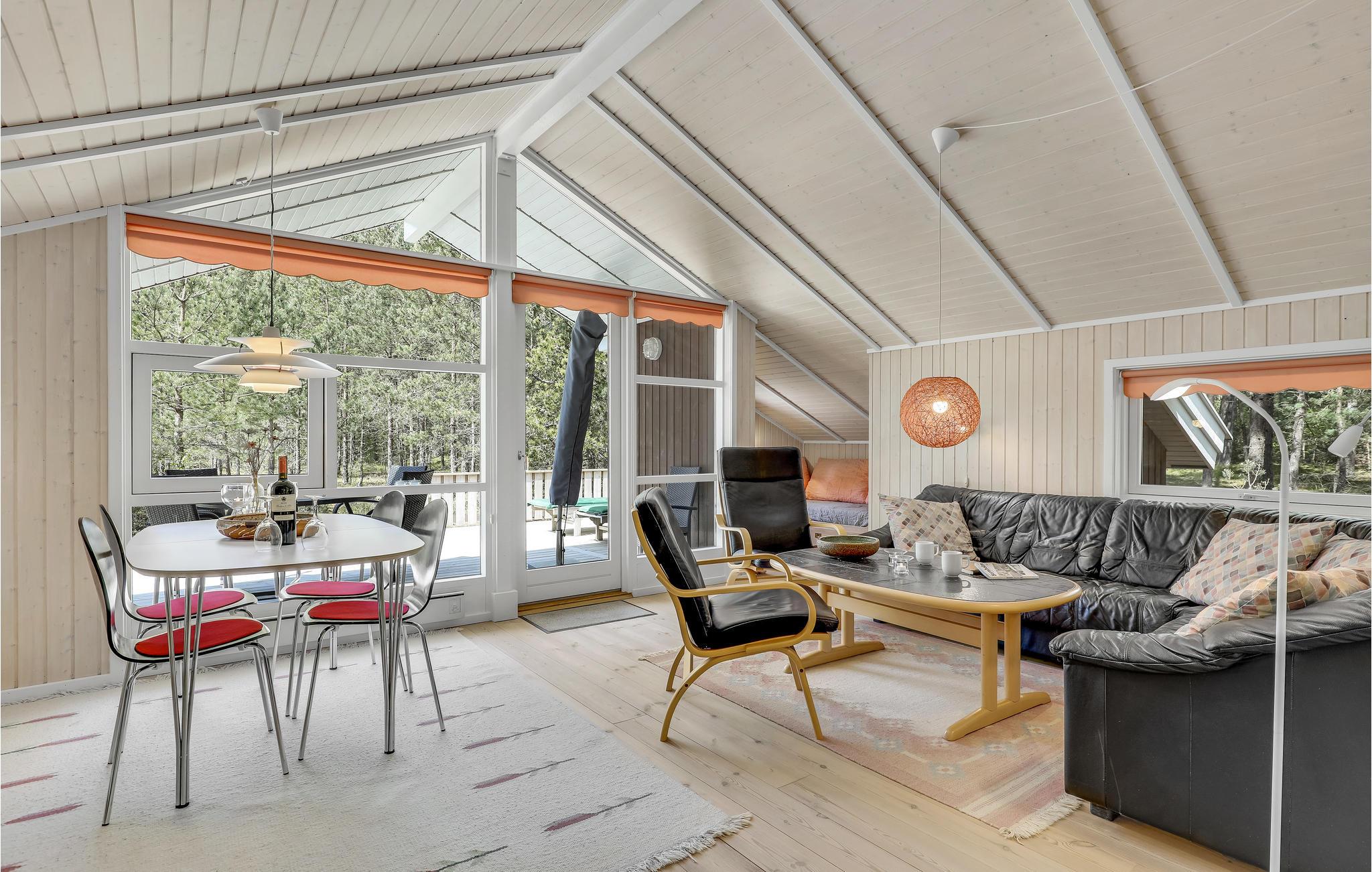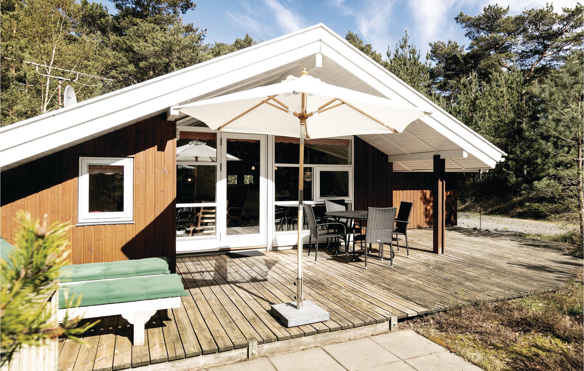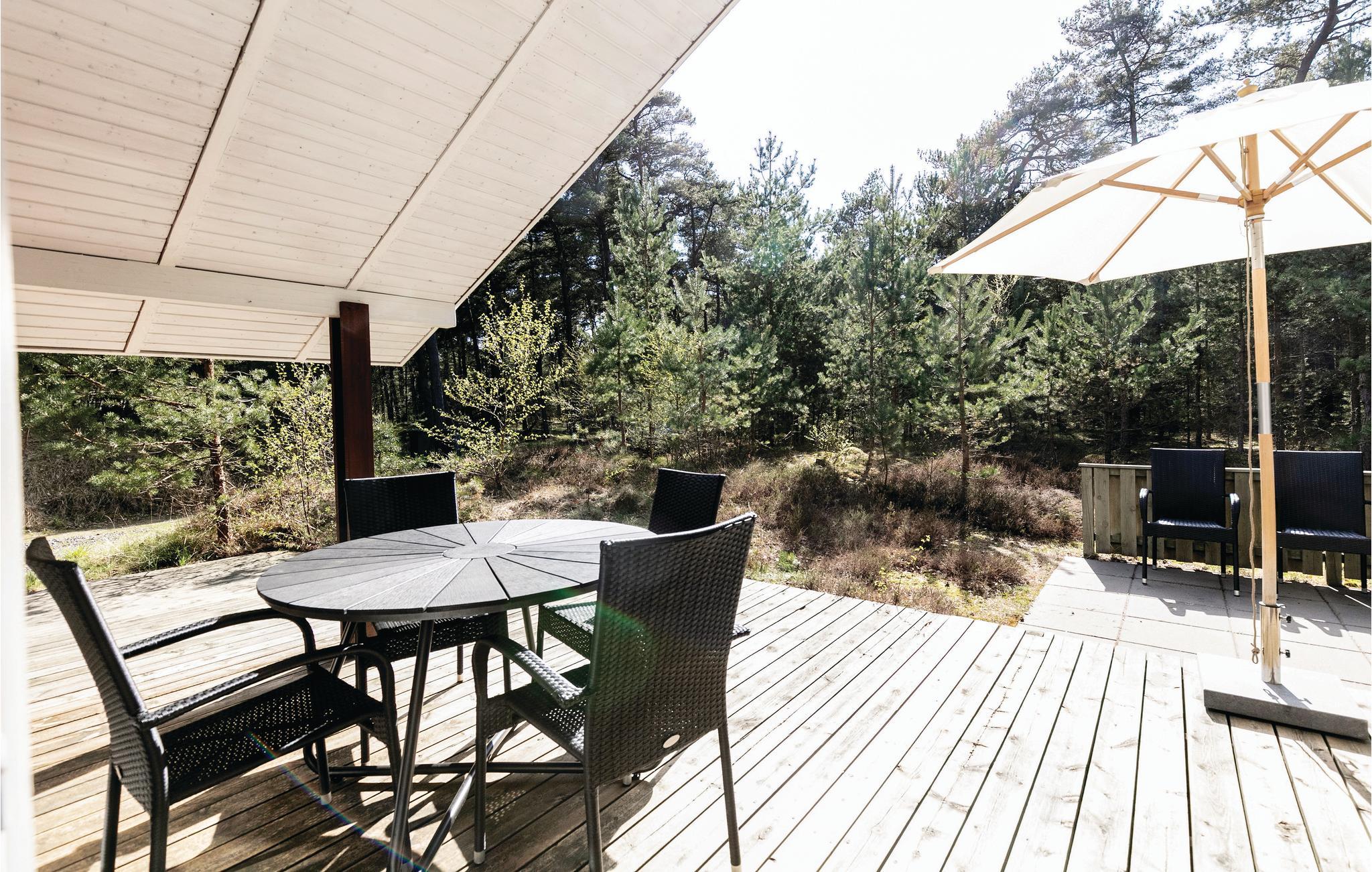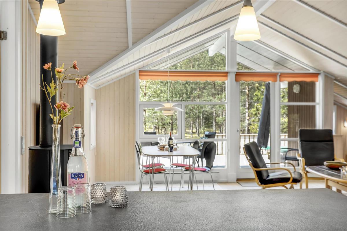 Uitnodigend en goed onderhouden vakantiehuis met een moderne, open keuken en gelegen niet ver van een mooi zandstrand, heerlijke natuur en de golfbaan Dueodde. Overal is het vakantiehuis gezellig, de lichte houten lambrisering op de muren de schuine plafonds geven het interieur een fijne sfeer. s Avonds kunt u zich terugtrekken in gezellige banken en luie stoelen. Er is een alkoof voor een middagdutje. Er is een barbecue op het terras. In het goed uitgeruste huis kunt u gratis gebruik maken van internet. Het wordt verwarmd met een warmtepomp en een houtkachel om het echt gezellig te maken. In de buurt zijn er grote natuurpercelen, goede wandelpaden en uitnodigende joggingpaden. Het strand is lekker dichtbij. Het huis is ideaal voor een vakantie in elk seizoen.